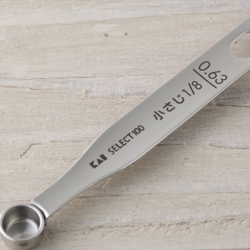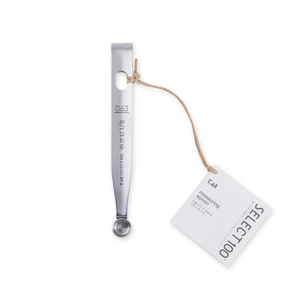 置いたままでも計量出来る計量スプーンです。0.63ml 小さじ1/8(少々)タイプ。