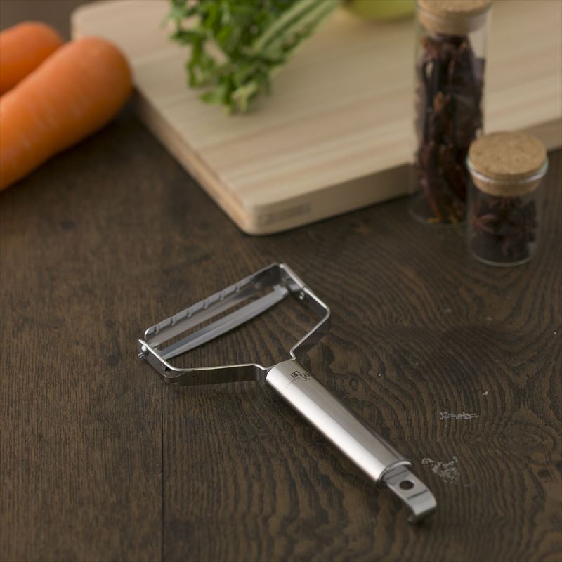 - 材質:刃/ステンレス刃物鋼、本体/18-8ステンレススチール、刃カバー/ポリエチレン(耐熱温度80度)