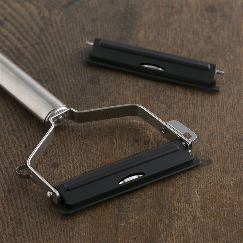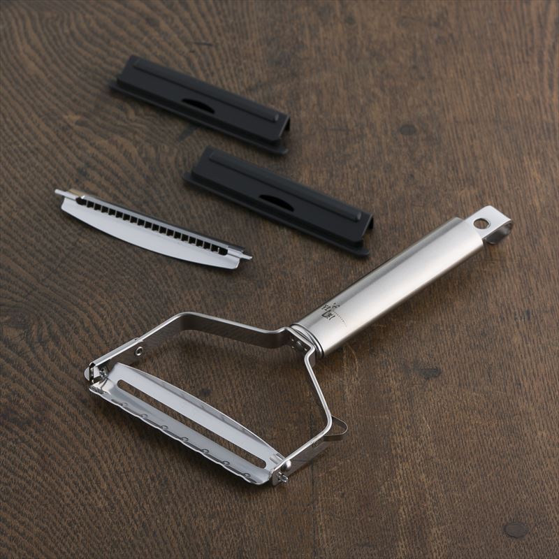 - 材質:スライス刃/ステンレス刃物鋼、千切り刃/ステンレススチール、本体/18-8ステンレススチール、刃カバー/ポリエチレン(耐熱温度80度)