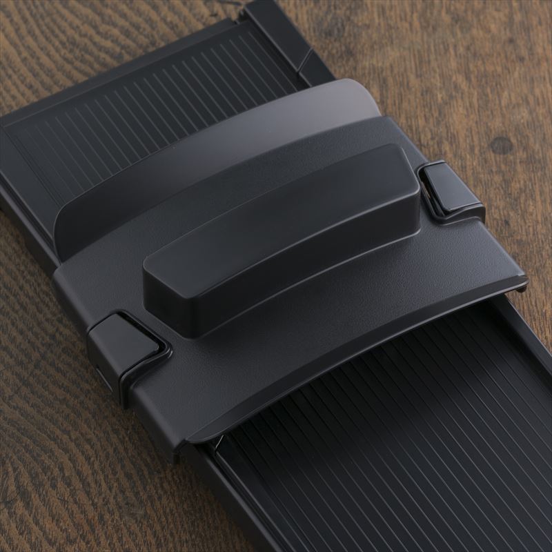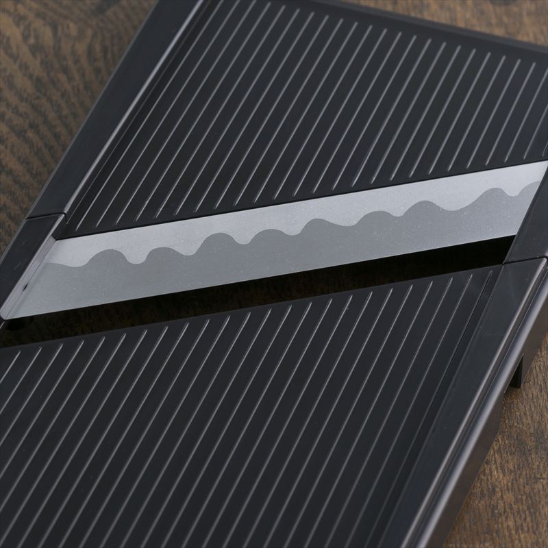 - 材質:本体・安全ガード/ABS樹脂(耐熱温度80度)、刃部/ステンレス刃物鋼、すべり止め/エラストマー樹脂(耐熱温度120度)