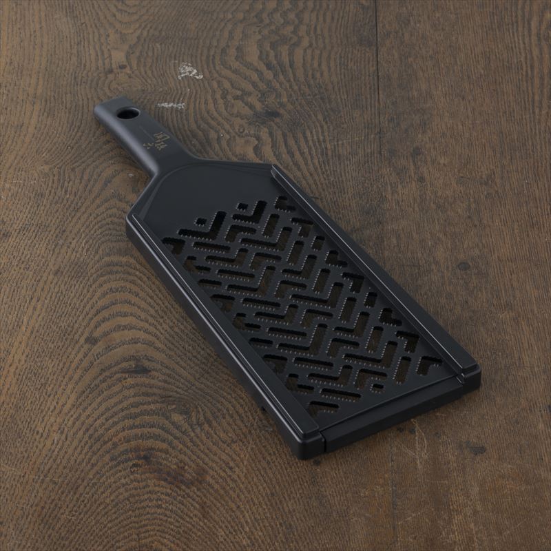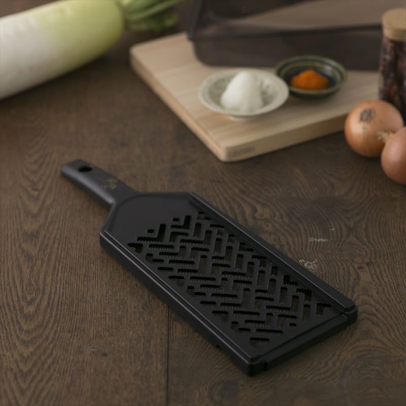 - 特殊な目立て設計と表面局面形状によりおろし能力を高めたおろし器。おろし面が多いのですばやく大量におろせます。先を直置きして調理する時に滑りにくいように滑り止め付。ボールに上で調理する時に安定する切り欠き付。