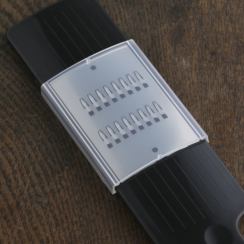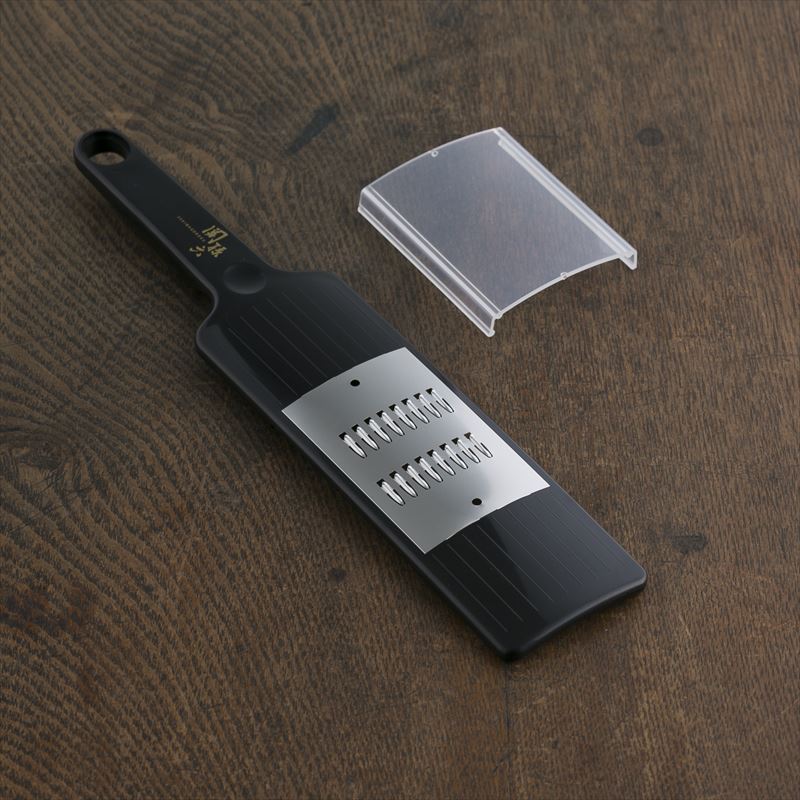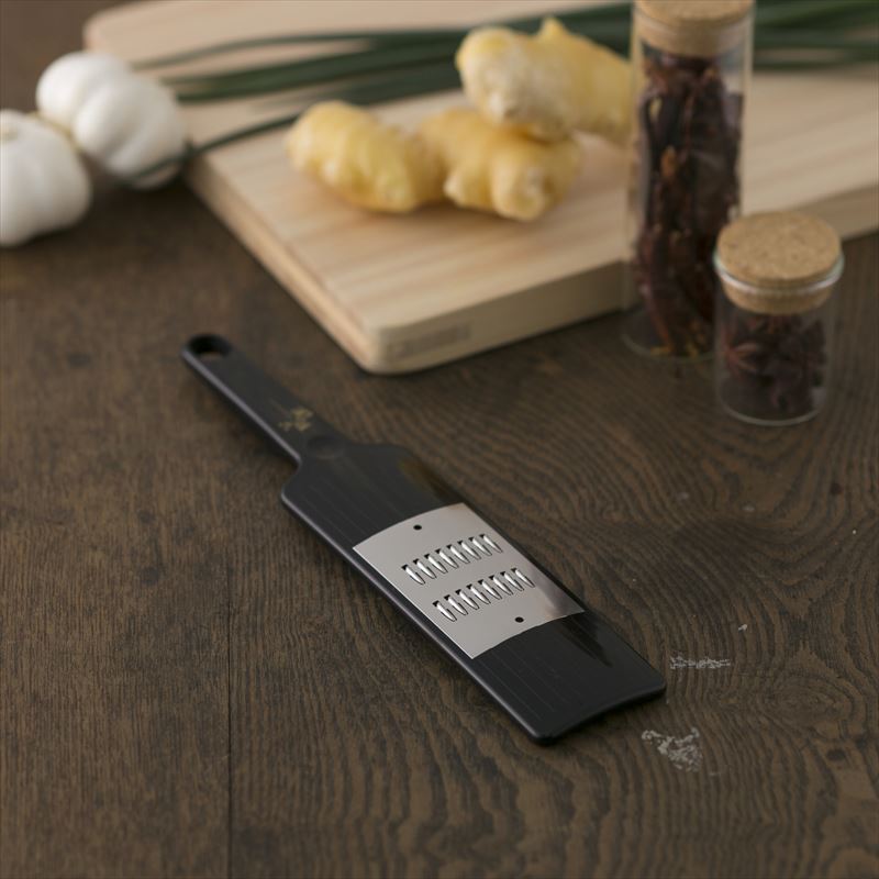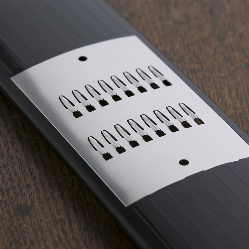 包丁では難しいしょうがの針切りが容易に出来る極細千切り器。エッチング技術ならではの針切り刃を採用。