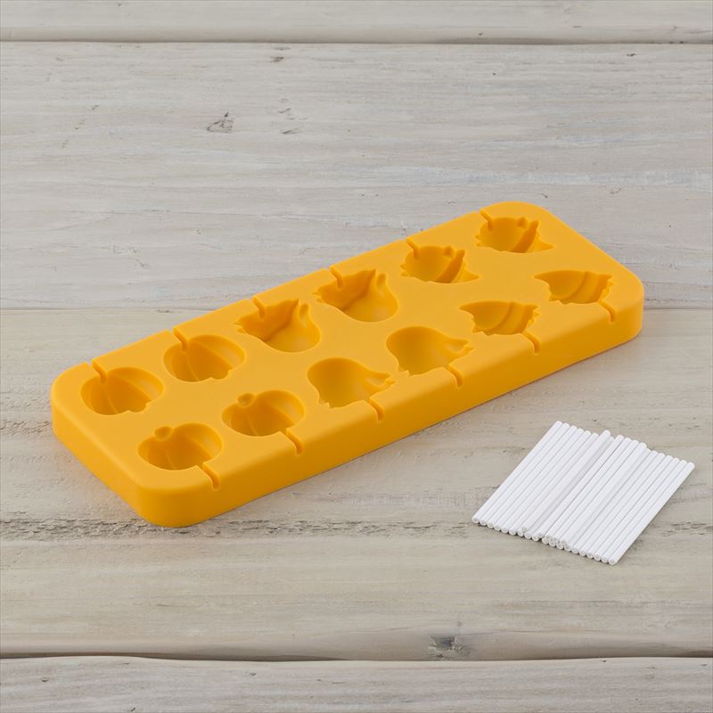 カボチャ、おばけ、魔女の型に沿ってケーキ生地を流し込んで焼いたり、チョコレートを流して冷やし固めるだけでかわいいロリポッププチスイーツが完成します。チョコレート型としても使えるアイテムです。ss0040_ws5.jpg