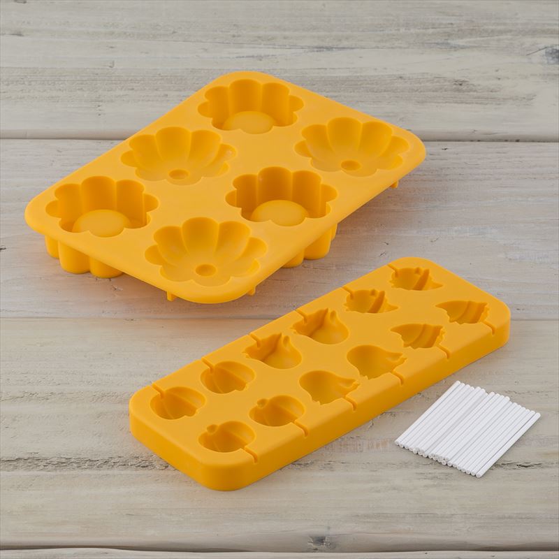 クックパッドのユーザーの声を集めて、クックパッドとコラボ開発した、カボチャ型のカップケーキが焼けるシリコーンケーキ型と、ひと口サイズのロリポップ型のセットです。カップケーキ型はカップの中にホイップクリームを入れたり美味しくアレンジができ、ロリポップ型は型に沿ってケーキ生地を流し込んで焼いたり、チョコレートを流して冷やし固めるだけでかわいいロリポッププチスイーツが完成します。