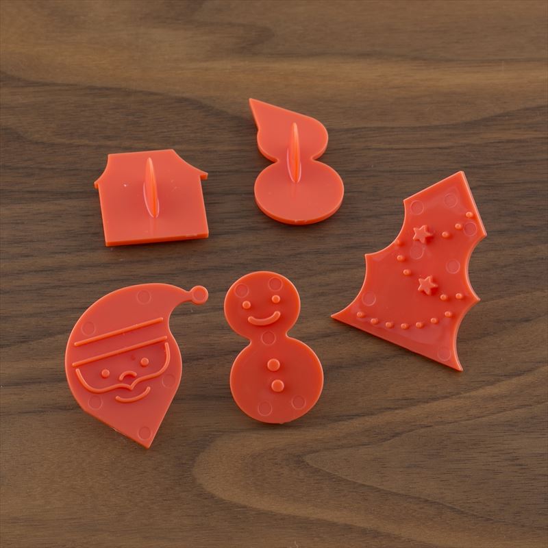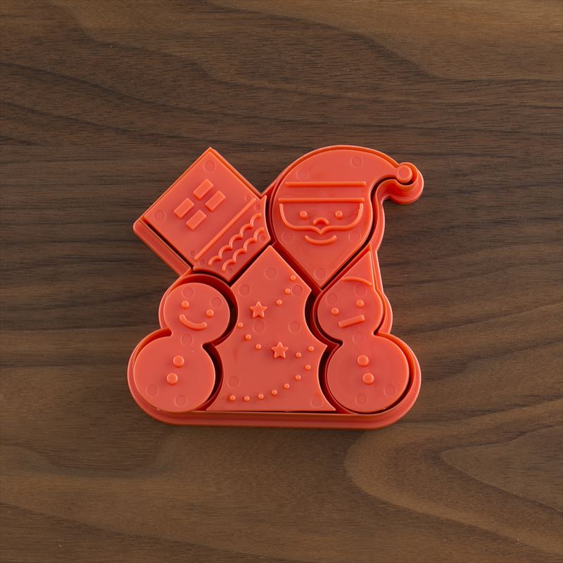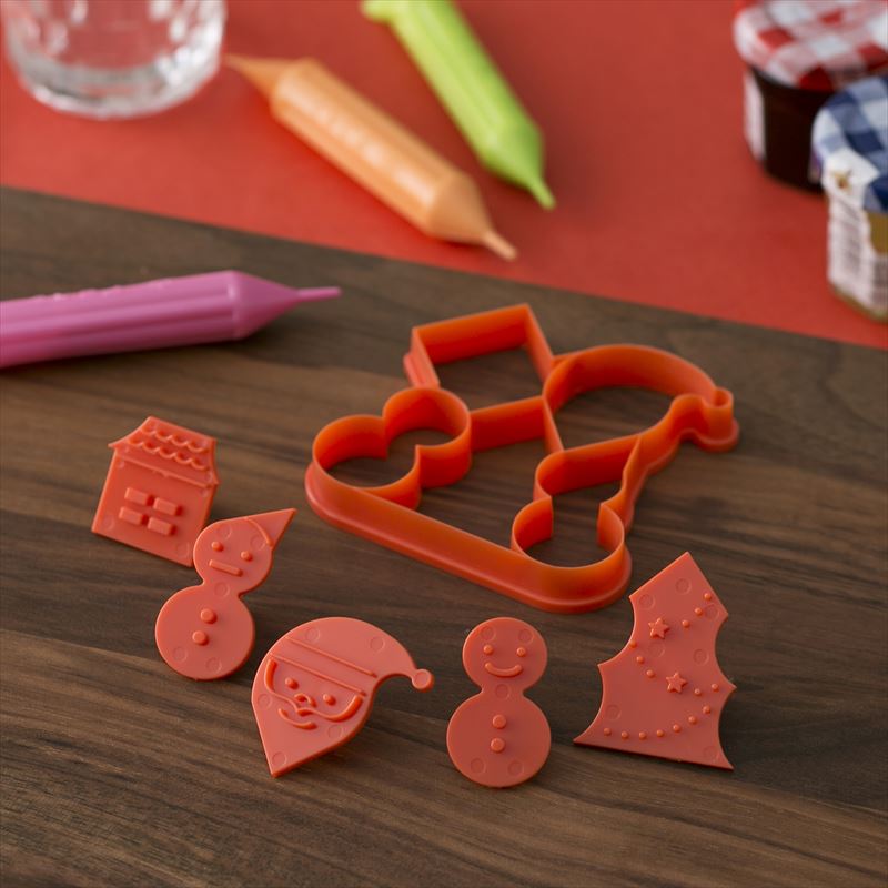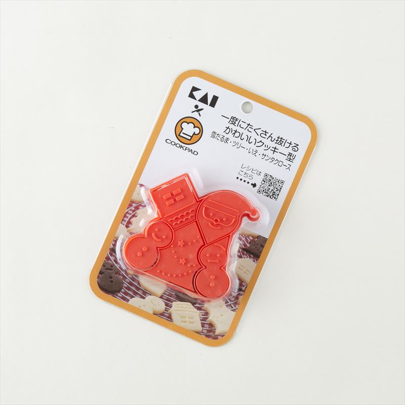 クックパッドのユーザーの声を集めて、楽しく使える製菓用品を貝印・クックパッドでコラボ開発いたしました。一度に雪だるま・ツリー・いえ・サンタクロースが抜けるクッキー型です。付属のパーツを型に合わせて押すと、表情がついてかわいく仕上がります。