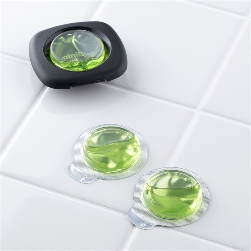 カラフルで、コンパクトな、リキットタイプの生ごみ用の消臭・芳香剤「Mini bini」の詰替え用パック。強力な消臭作用で、ゴミの臭いと混ざることなく、嫌な臭いを除去してくれます。
