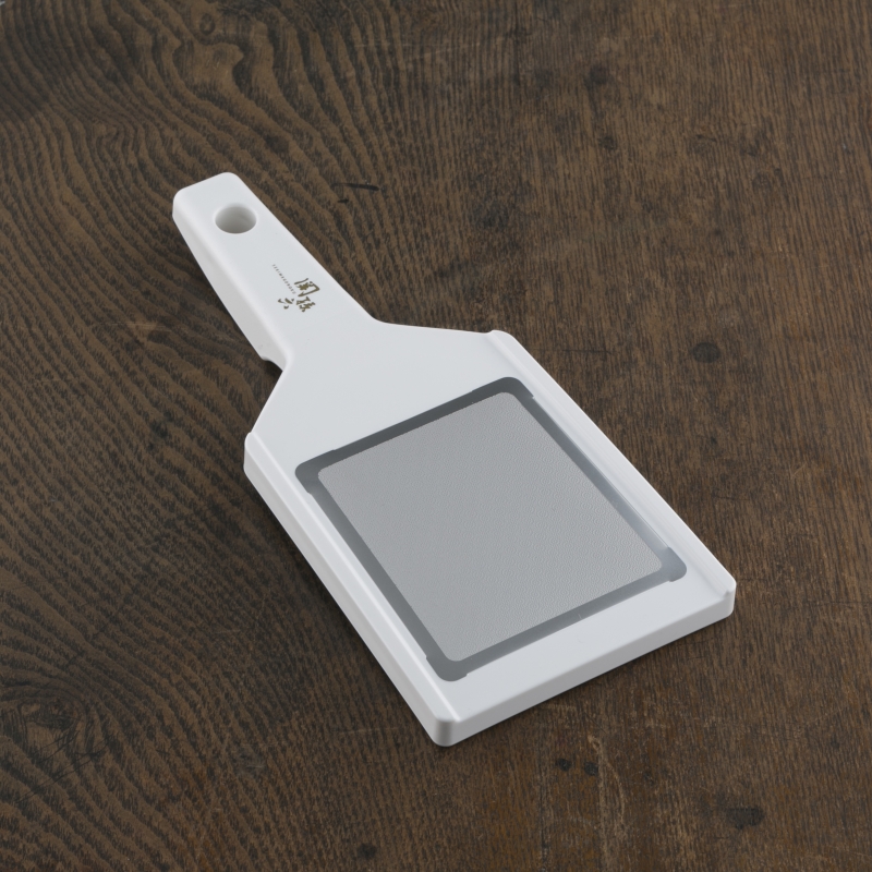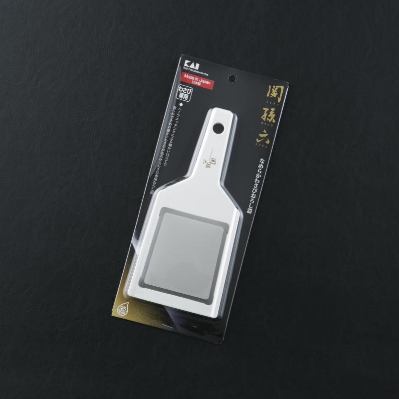 ハーフエッチングによる細かい目立てで滑らかできめの細かいわさびがおろせるわさび専用おろし器。