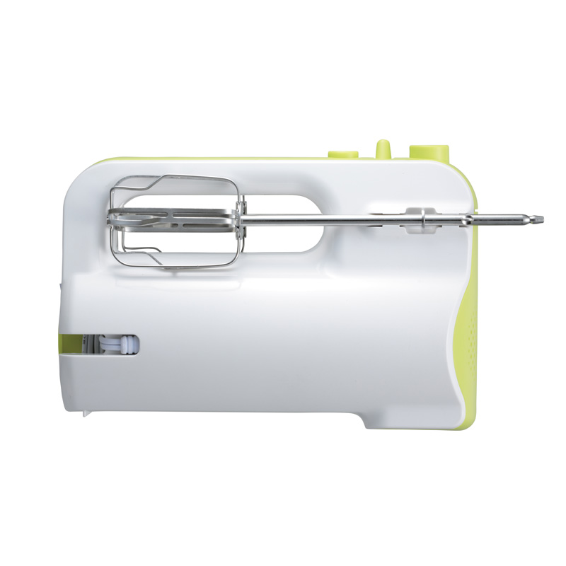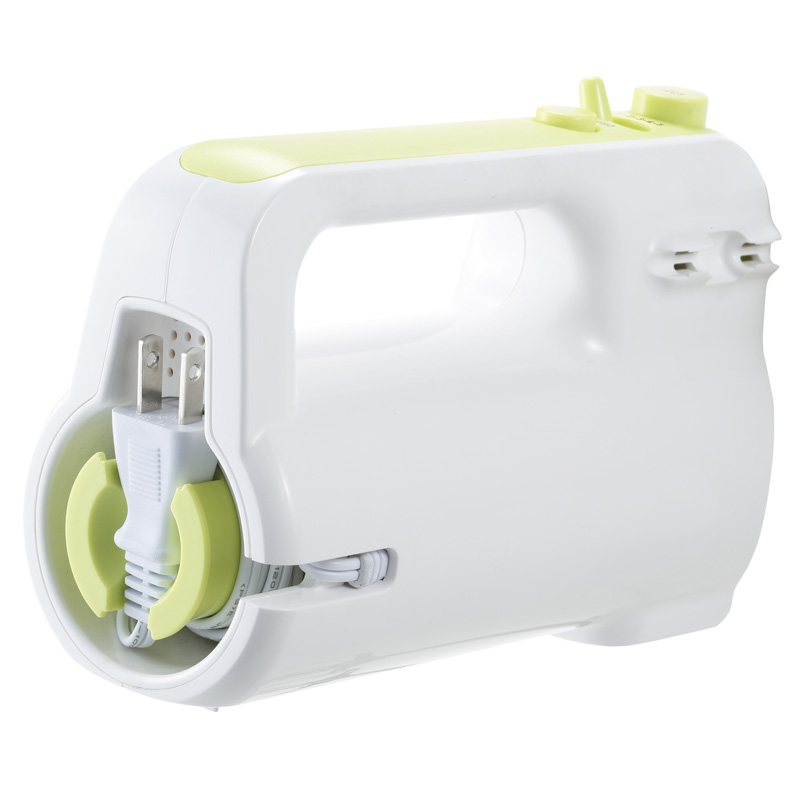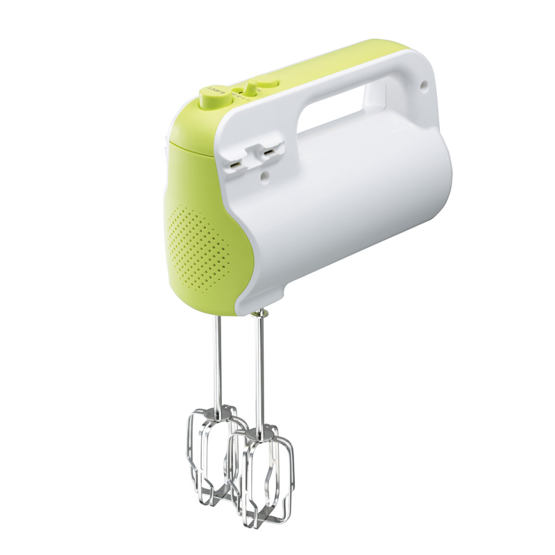ビーターは撹拌効率の良いこだわりのクランクスリッド形状。効率よく空気を混ぜることができ、ふわっとスピーディーに仕上がります。スピードは5段階切替、ターボスイッチで一気にスピードアップが可能です。ボタンを押すだけで簡単にビーターを取り外せるワンタッチ仕様。 ビーターは本体にはめることができ、コードもすっきりと収納できます。