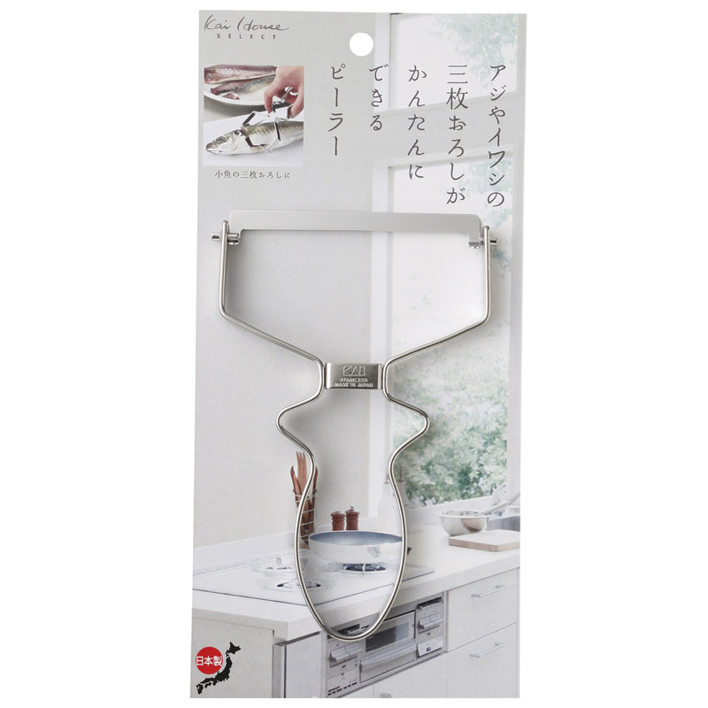 幅が8cm以下の魚を、包丁を使わずに三枚におろすことができるピーラーです。