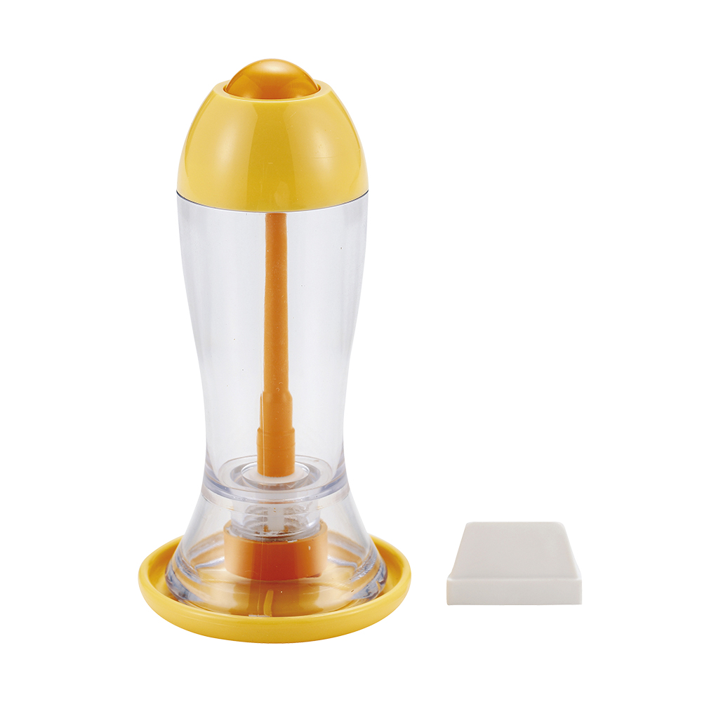 醤油をかけすぎない握りやすい形状のプッシュ式醤油ディスペンサー。コンパクトな受け皿付。ワンプッシュで約0.1mlの醤油がでます。