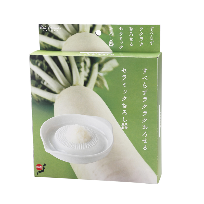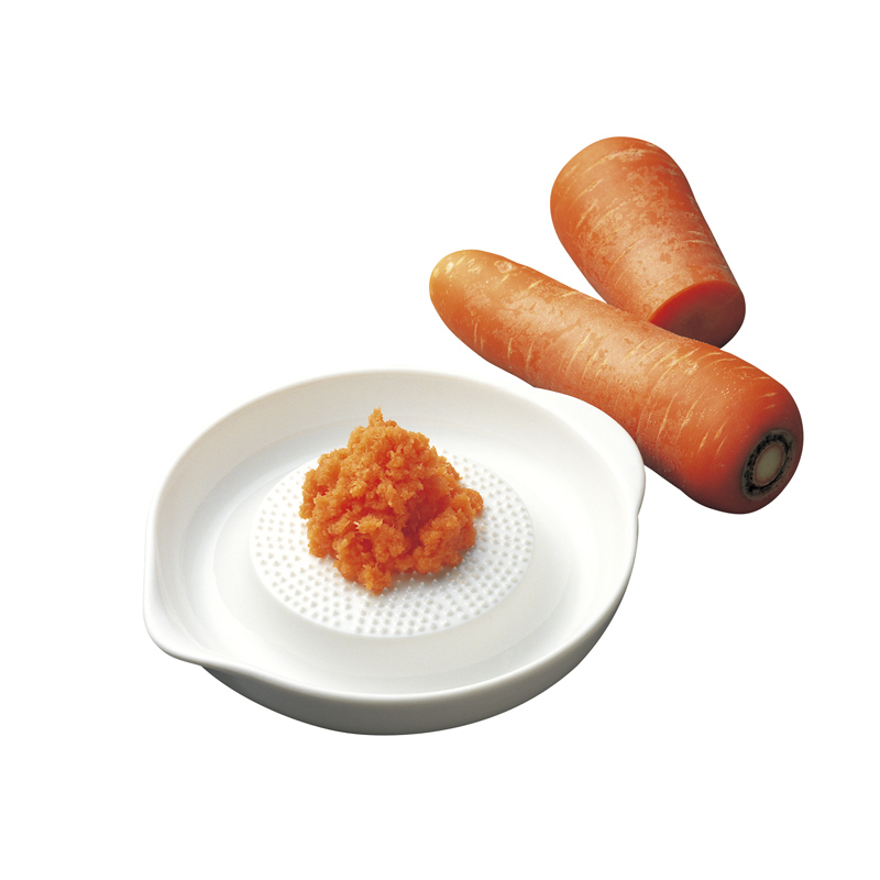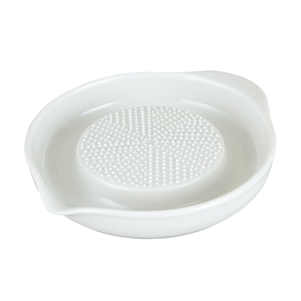 おろしている途中でもすべりにくい、シリコーン足付のおろし器です。臭いうつりもなく、洗いやすいセラミック製。