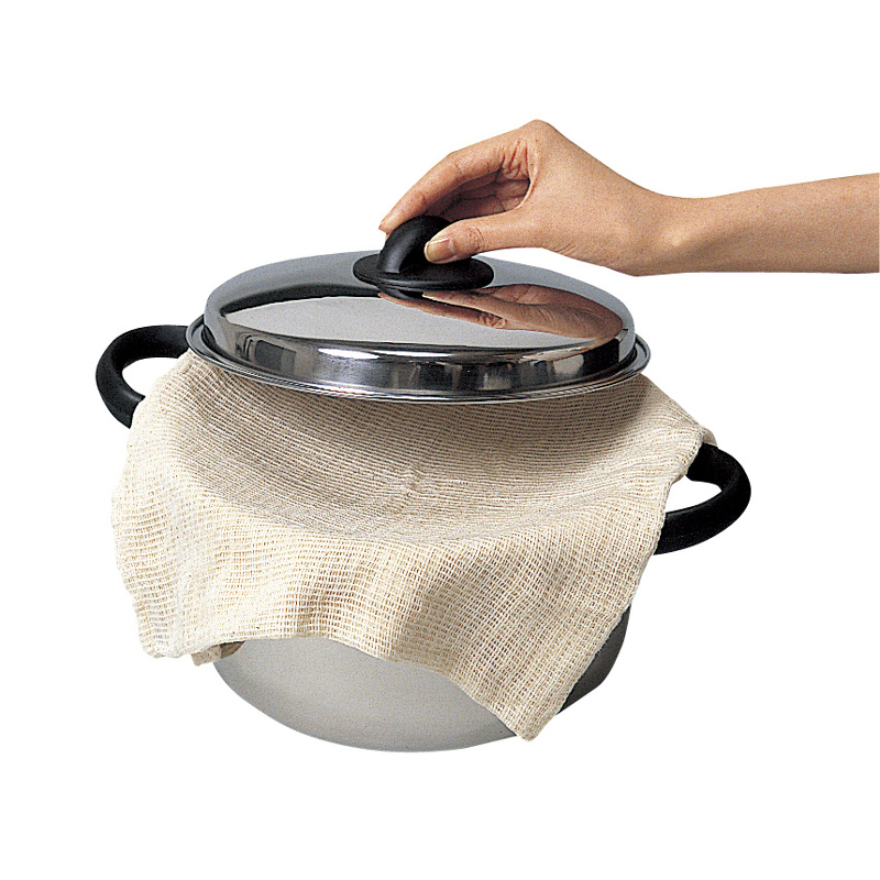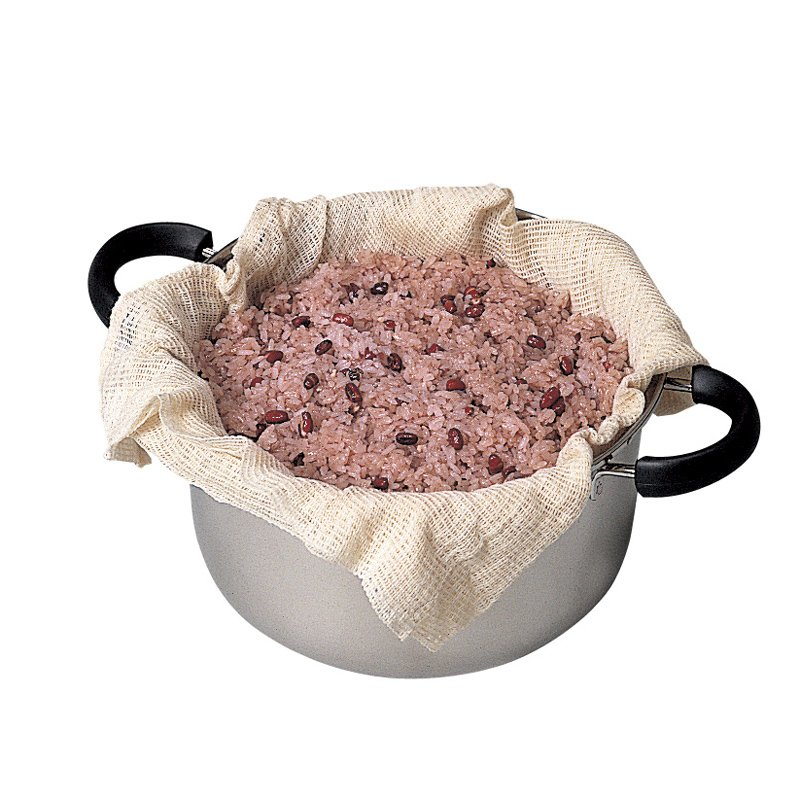 蒸し器やせいろに敷くとこびりつかず布ごと引上げられて便利です。調理によっては、蒸し器の蓋にかぶせると適度に蒸気が抜けて水滴が落ちるのも防ぎます。
