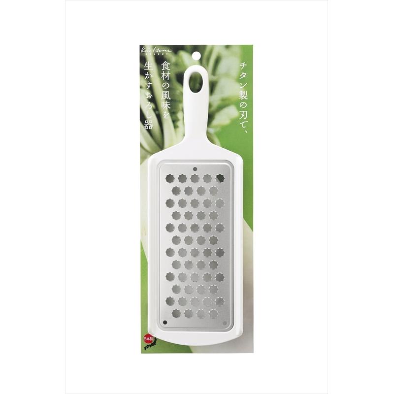 サビずに食材の風味を変えないチタン製おろし器。しっかり作業できるハンドル付き。