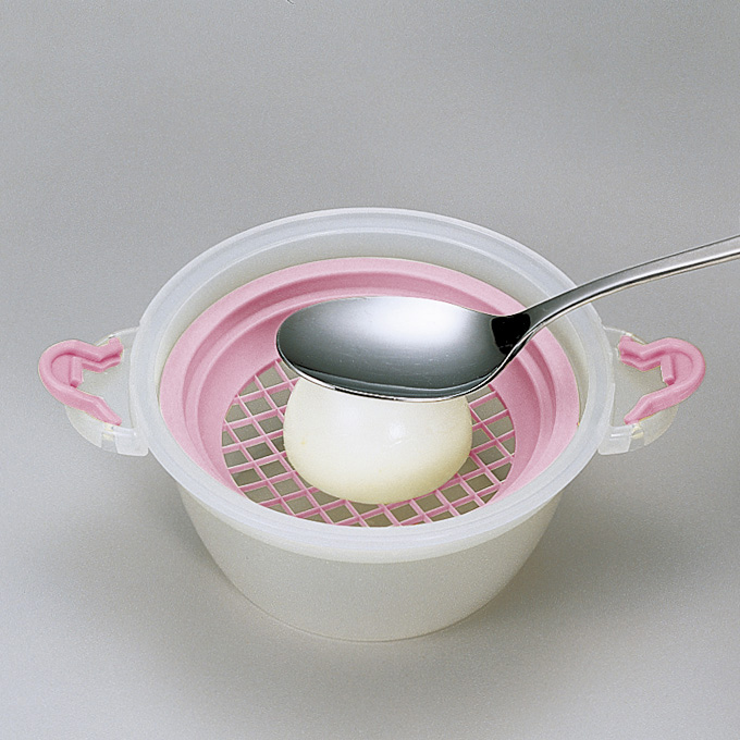 , ゆで玉子、温野菜が作れて裏ごしメッシュもついている1台3役。加熱時間を変えれば黄身の固さを自由に調節ができるから半熟たまごも簡単にできますよ。(説明書に目安時間表示あり)茹でた玉子を裏ごしメッシュ面にあてれば、簡単にたまごサンドやミモザサラダもできてしまいます。裏ごしを使うと、ゆで卵がサイコロ状に!本体に水と玉子もしくは野菜をのせ、フタをしたらレンジで加熱するだけ。加熱時間表示あり:ゆで卵、じゃがいも、かぼちゃサンドイッチ用玉子の作り方の説明がついています。※電子レンジの庫内高さ150mm以下の場合は使用できません。※必ずフタをして加熱してください※必ず2ヶ所のストッパーをしてフタを止めてください※必ず目皿を使用して加熱してください※使用前は必ず調理手順・注意事項をご確認ください。