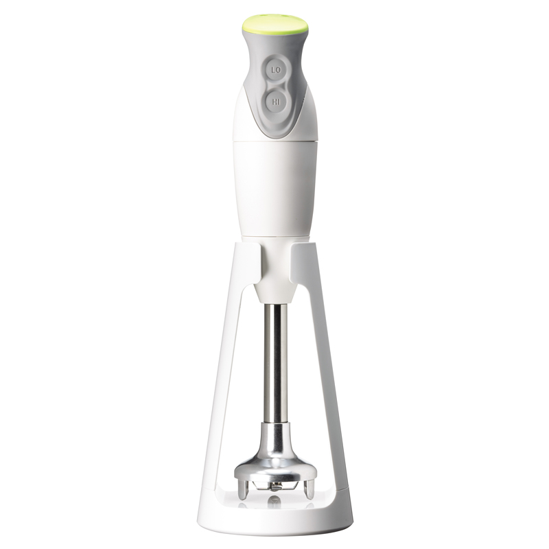 - Kai House SELECTよりハンディタイプのミキサー、クイックブレンダーが登場です。これ1台で肉や魚のミンチ、野菜や果物のジュースづくり、生クリームの泡立てといった様々な用途に使えるので、毎日の調理はもちろん、手の込んだお料理、離乳食づくりなど、幅広い場面で活躍してくれます。スイッチを入れてからゆっくりと回転数が上がるスロースタート機能により、使い始めに材料が飛び散りにくい(※当社比)のが特長です。※こちらはアタッチメントが3つのみのスタンダード仕様です。収納ケースは付いておりません。1.クリーニング機能アタッチメント部およびシャフト部分も含めた分解構造により、シャフト部まで洗える構造。2.防水機能稼働部(先端部)は水分・食材の侵入を防ぐこだわりの防水設計。(※モーター部は濡らさないでください。)3.セーフティ機能モーターへの負担を軽減することにより、安全性、耐久性が向上しております。また、スロースタート機能をプラスしたことで、稼働スタート時の食材の飛び散りを防ぎます。4.回転数の適正化モーターの回転数を適正化することで作業性を向上。