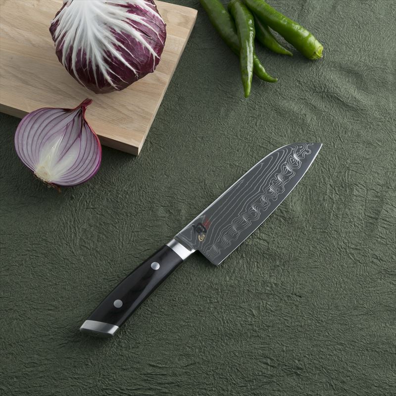 少し大きいサイズの三徳はプロの要望も満たしてくれる包丁です。野菜・肉・魚介、いずれの素材も軽快に切ることができます。包丁のアゴの部分を使えば、ジャガイモの芽など、素材の要らない部分を取り除く作業も可能。