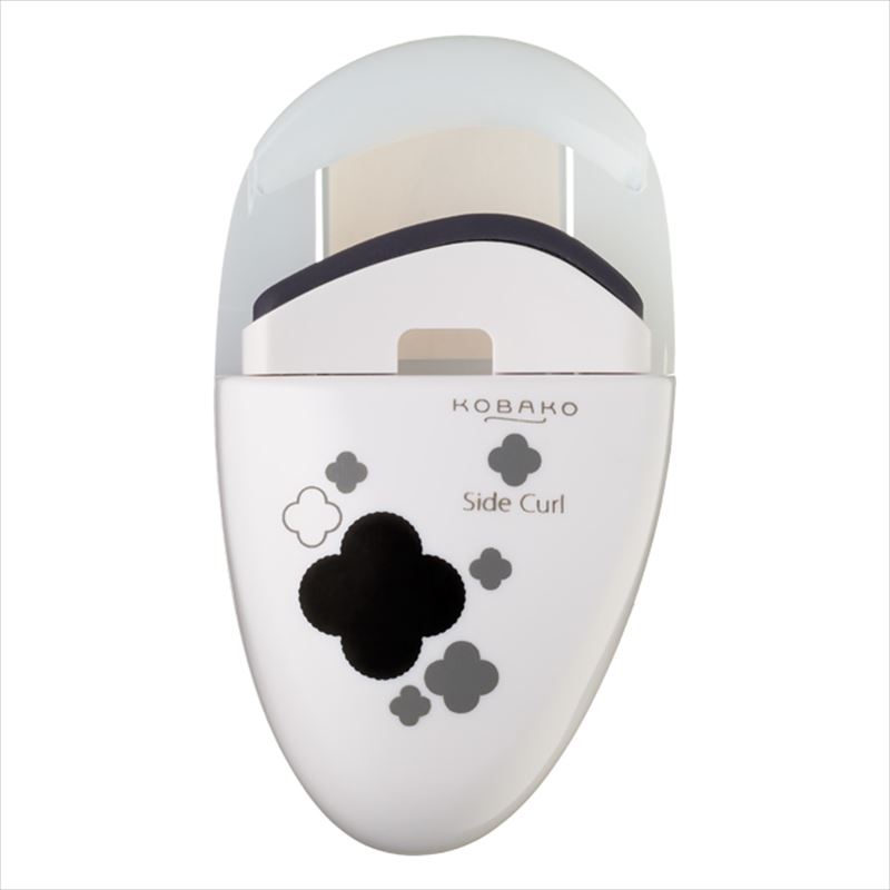 左目用と右目用がセットになったユニークなサイドカールタイプ。外側のカーブが強調されたシェイプなので、目尻寄りのカールがポイントになる仕上がりになります。黒目の上あたりにカーブの山をあて、少しずつずらしながらカール付けします。目の中央から目尻にかけての部分が、特に外側に向かってカールアップされます。よりセクシーでニュアンスのある、印象的な目元に。