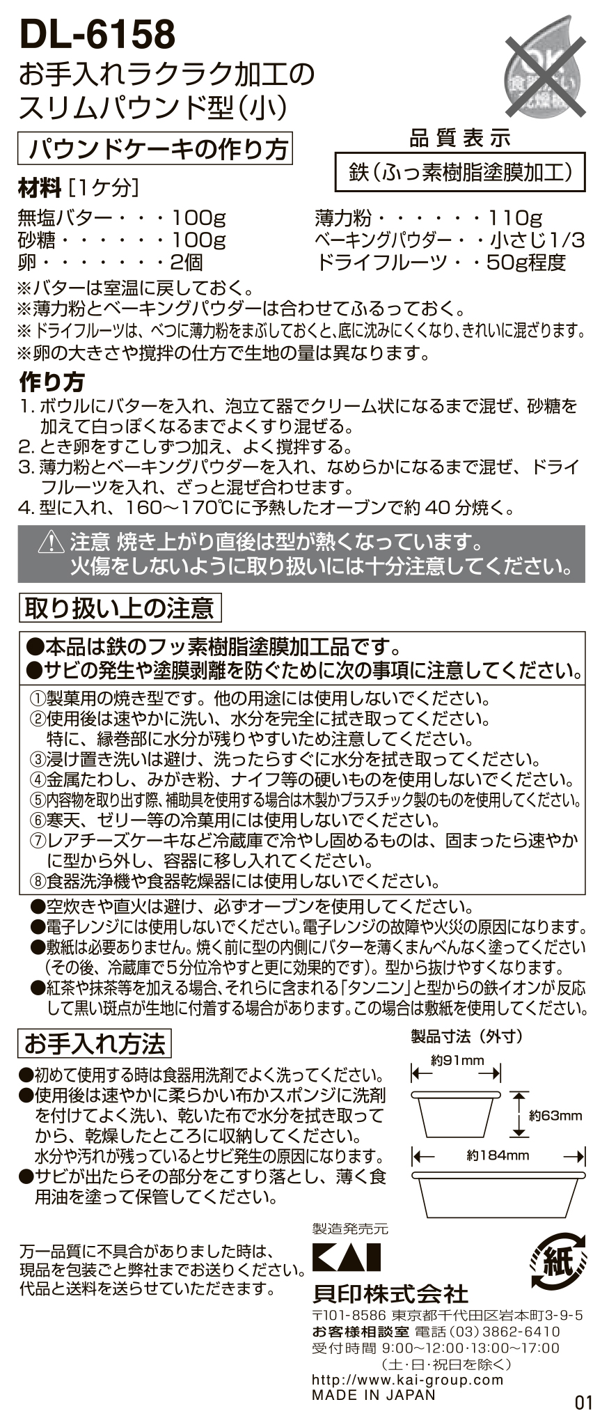 お手入れラクラク加工のスリムパウンド型 小_L