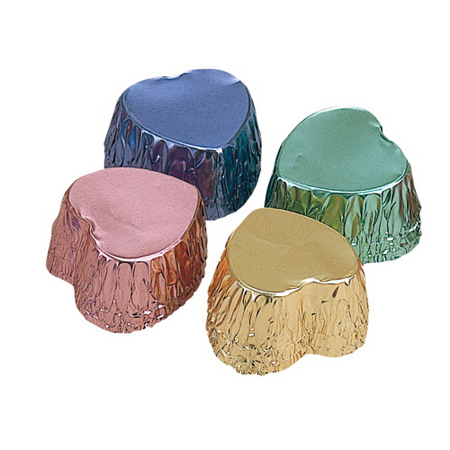 バレンタインに最適のチョコレート型です。湯せんしたチョコレートを流すアルミ箔型です。ハート型がキュートな4色セット。