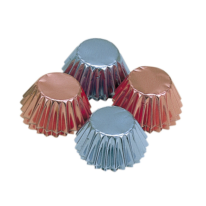 湯せんしたチョコレートを流すタイプのアルミ箔型です。かんたんにたくさんつくれるからプレゼントにぴったり。
