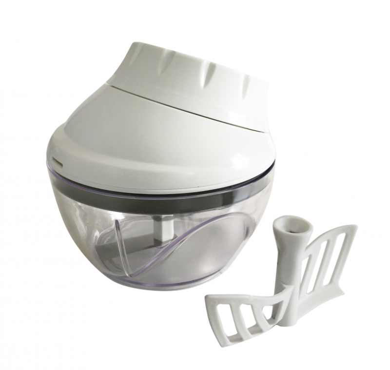 ハンドルを回すだけで簡単に人参・キャベツなどのみじん切り、マヨネーズ・メレンゲや生クリームがあっと言う間に作れる優れもの!