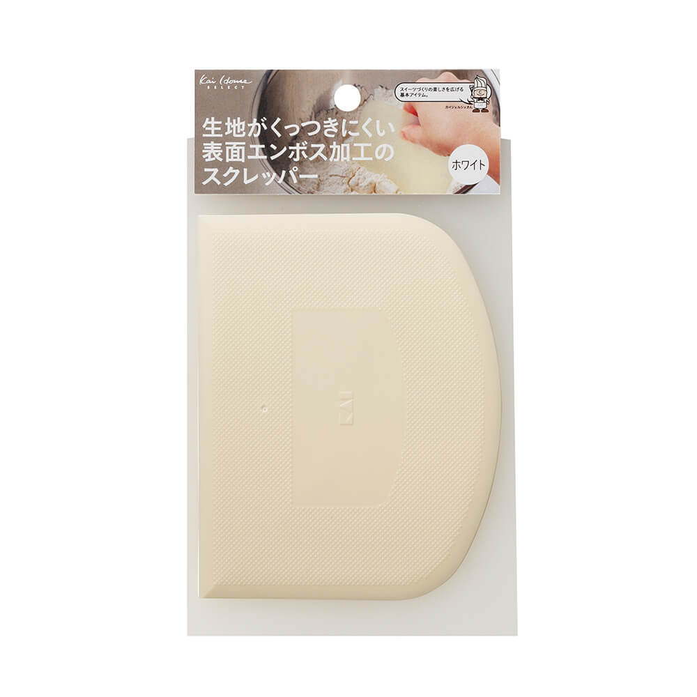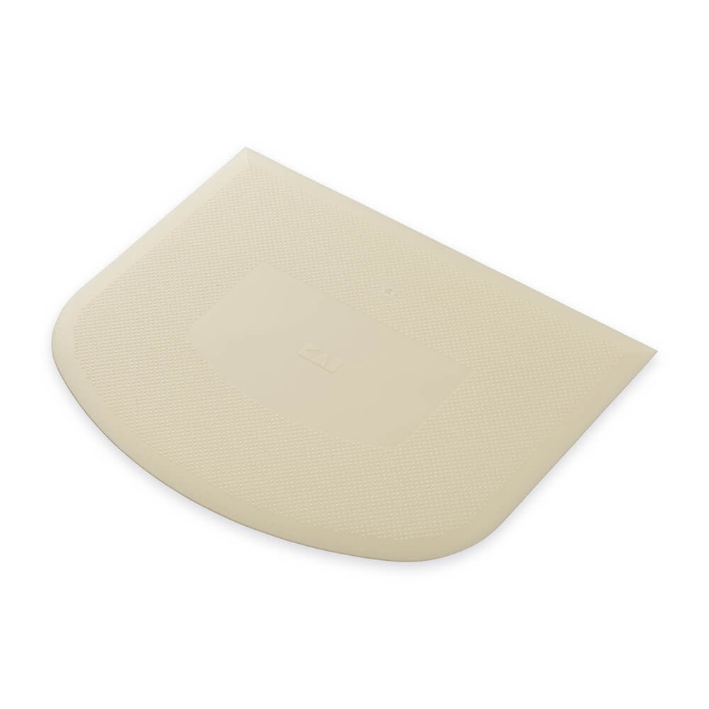 生地がくっつきにくいよう、表面にエンボス加工を施したスクレッパーです。粉とバターの切り混ぜや焼く前の生地の表面ならしに便利です。