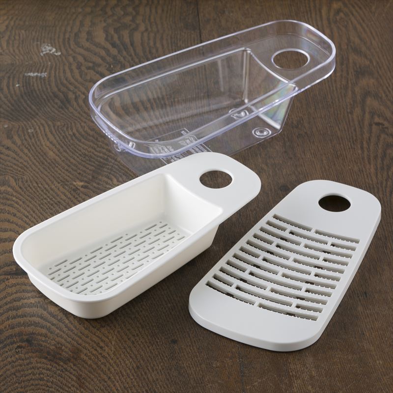 専用受け皿の他、余分な水分を切るための便利な水切りトレー付きです。