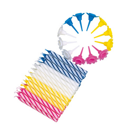 お誕生日やお祝いの時のケーキの飾り付けに最適です。数種類の色でセットされているカラフルなキャンドルです。