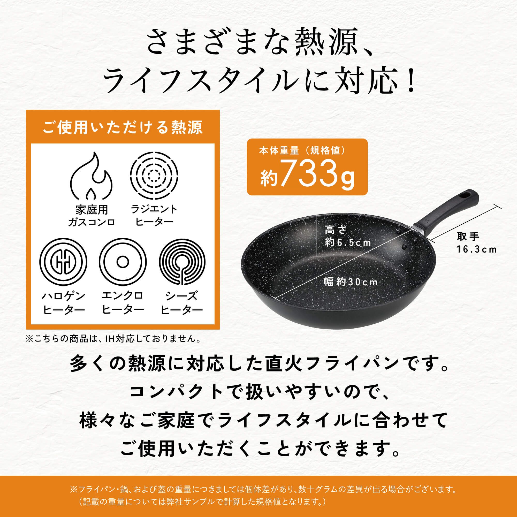 - 〈PFOA/PFOSフリー〉当社比約20%の軽量化を実現。軽くてラクラク、しかも本格派!使いやすさにトコトンこだわったシリーズです。特長アルミ鋼材の底面を厚く、サイド面を薄く加工するスピン製法を採用することで、熱効率を高めています。特長ハンドルの長さを短くし、重量バランスを工夫することで『重さを感じにくい』構造に設計しています。薄い側面はフライパン全体に素早く熱が回り、厚い底面が保温性を高めるので「時短」調理にも一役買う機能性フライパンです。こちらのフライパン・鍋はPFOA、およびPFOSを使用しておりません。