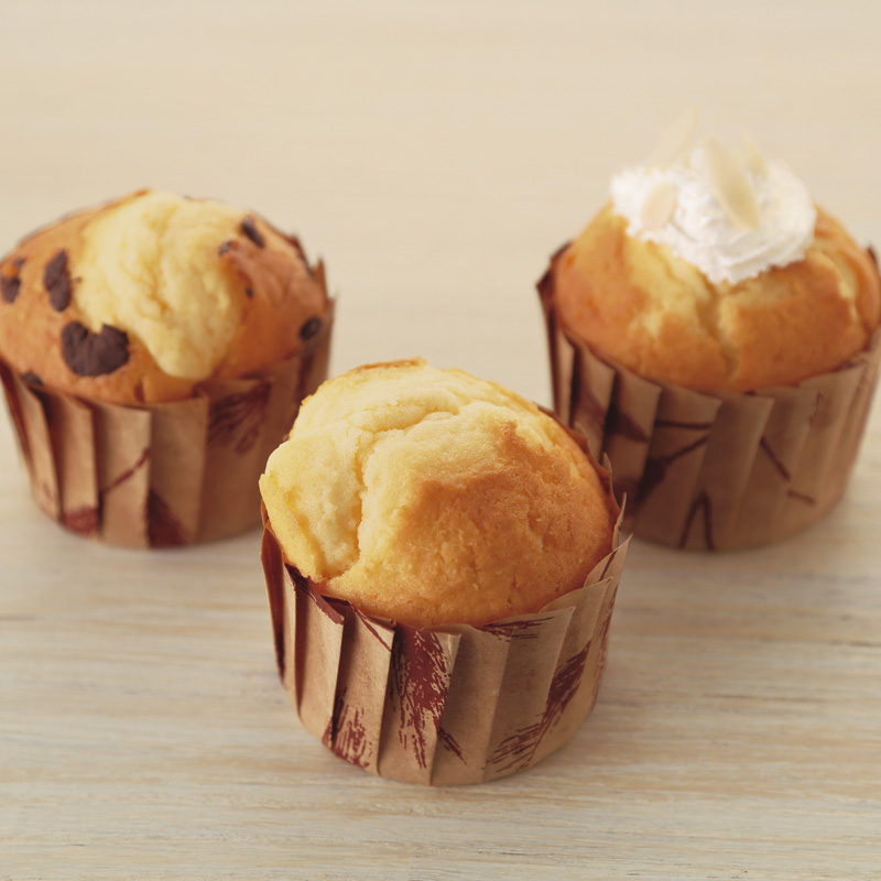 プレゼントに最適な紙製のマフィン型です、ラッピング袋付き。
