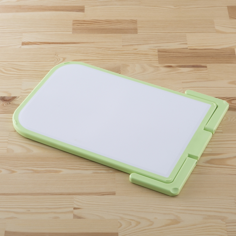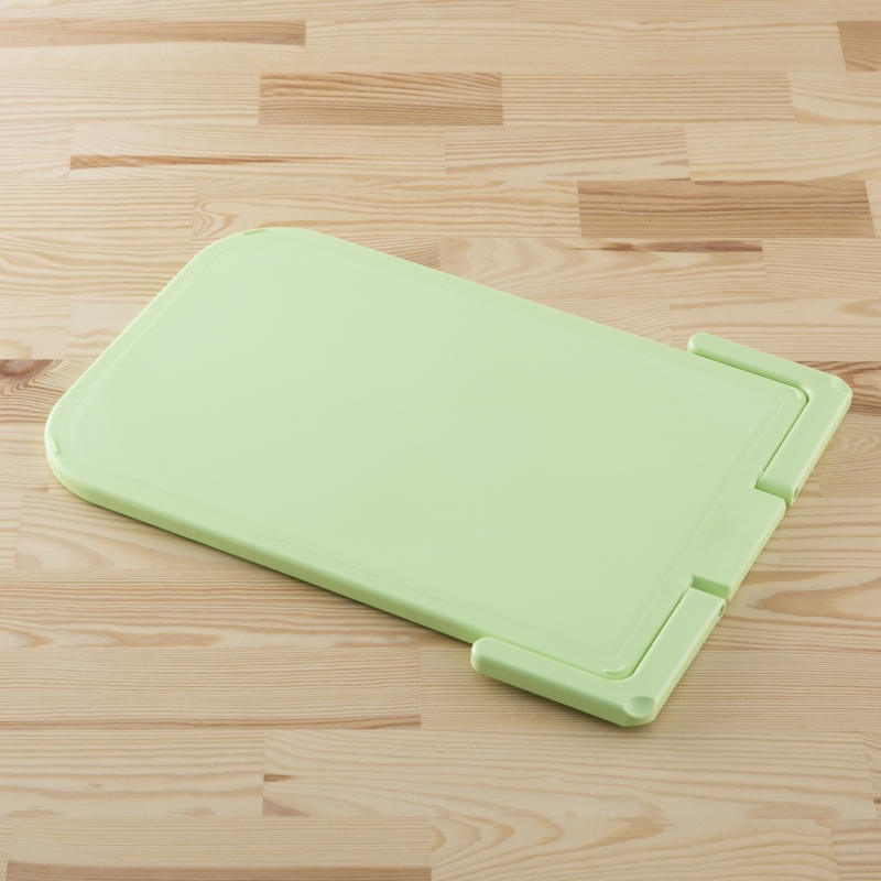 表面の質感や滑りにくい素材などの使い勝手はそのままに、軽量化を図りました。内部を中空構造にしながらも充分な剛性を確保。従来のハンギングまな板よりも約30%軽量化(当社従来品比)することで、使い勝手を大幅に向上させました。