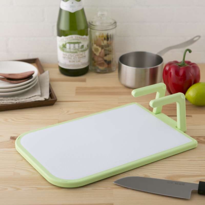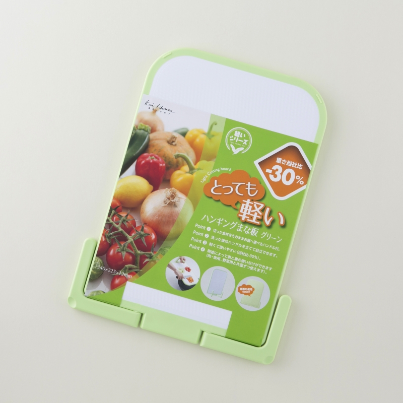 取っ手が付いて持ちやすい、軽くて便利なハンギングまな板です。