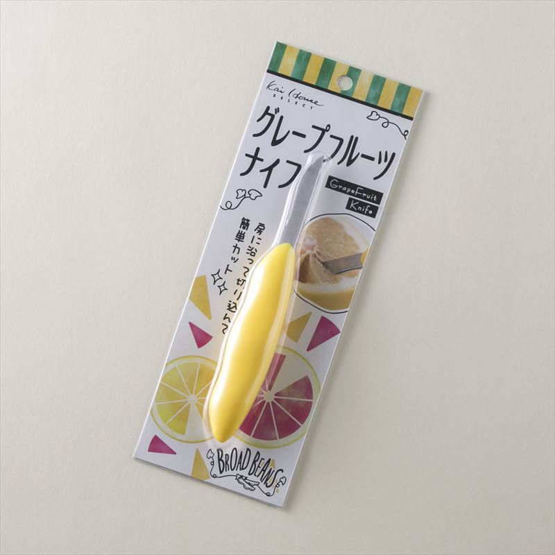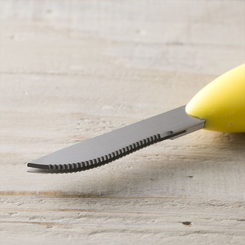 2枚の刃が一組になった構造で、間にグレープフルーツの薄皮を挟むと、薄皮ギリギリのところで果肉がきれいに取れます。