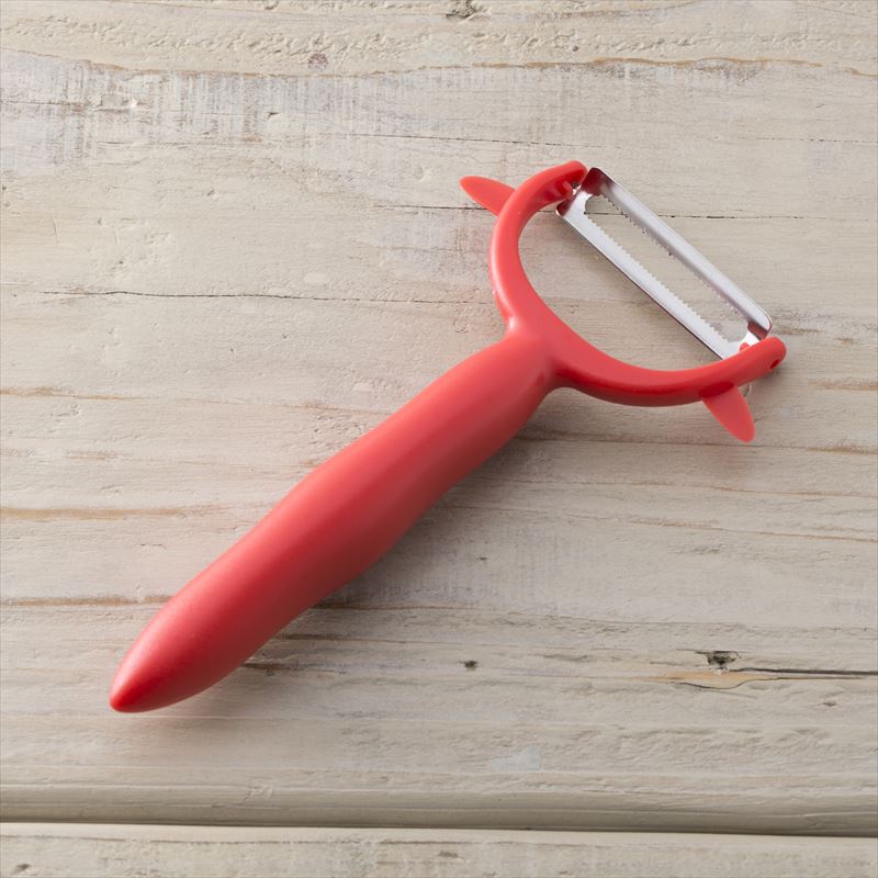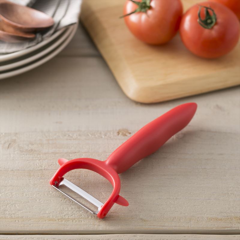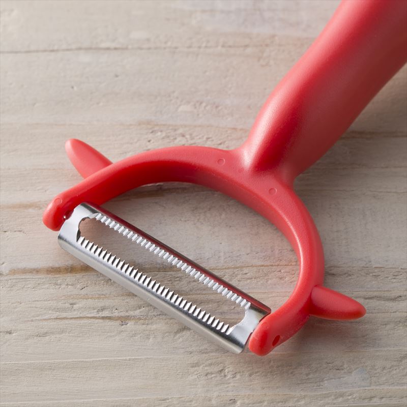 トマトナイフと同様に、ピーラーの刃先にも細かいギザギザが付いたセレーション刃を使用。トマトなどの柔らかい食材の皮を剥くのに適したピーラーです。