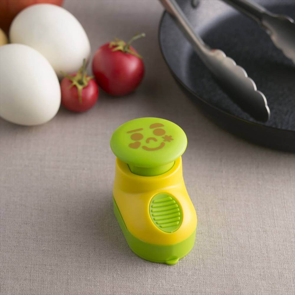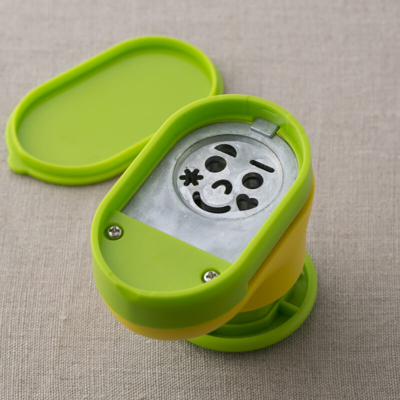 焼きのりをはさんでワンプッシュするだけで、おにぎりをデコるための顔パーツが簡単につくれます。