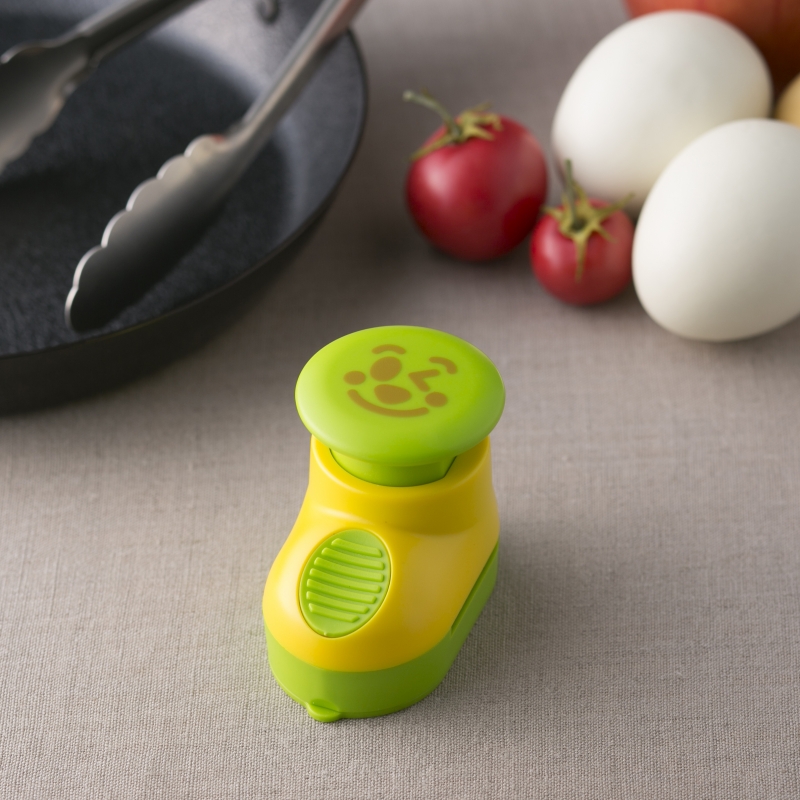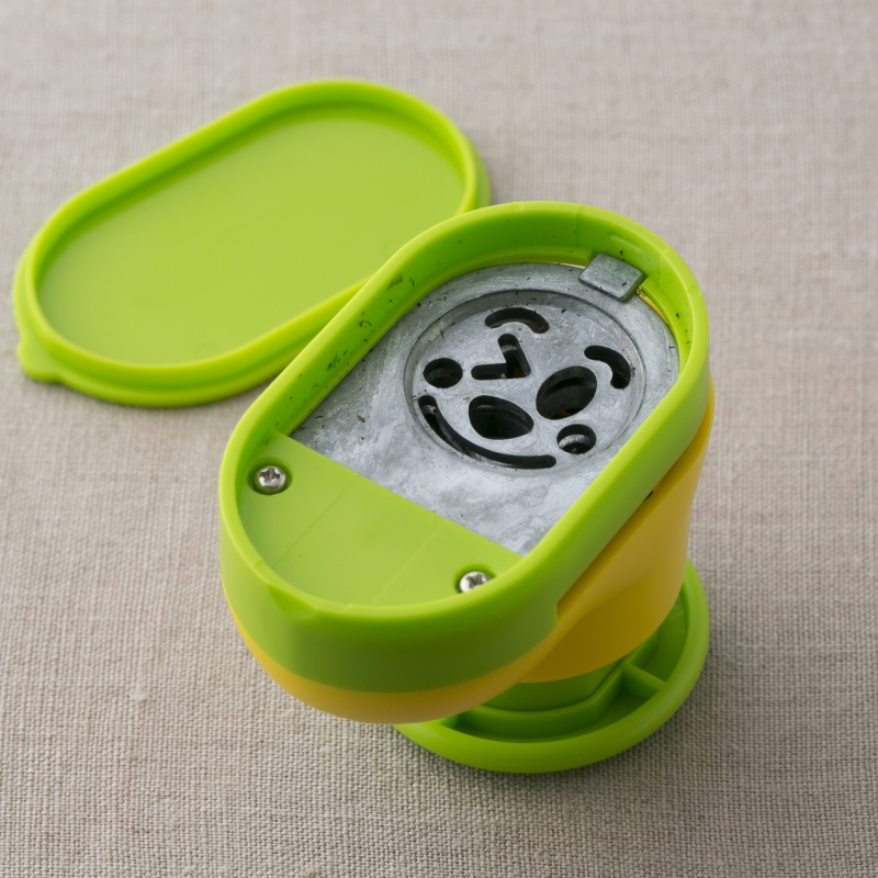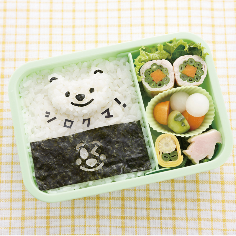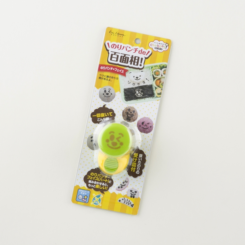 焼きのりをはさんでワンプッシュするだけで、おにぎりをデコるための顔パーツが簡単につくれます。