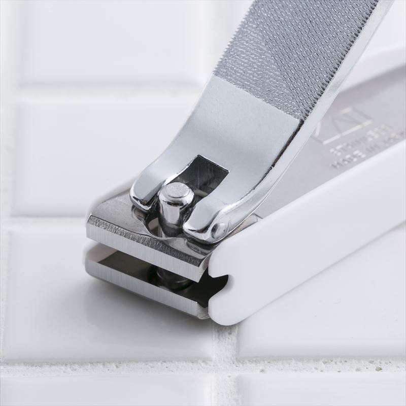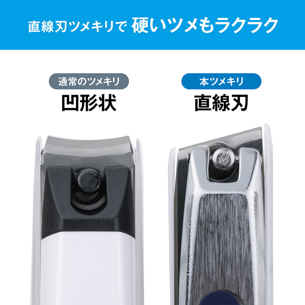 凸刃のツメキリで作った切り欠きから、左右にまっすぐ爪を切りやすい直線刃。理想のスクエアカットがつくれます。