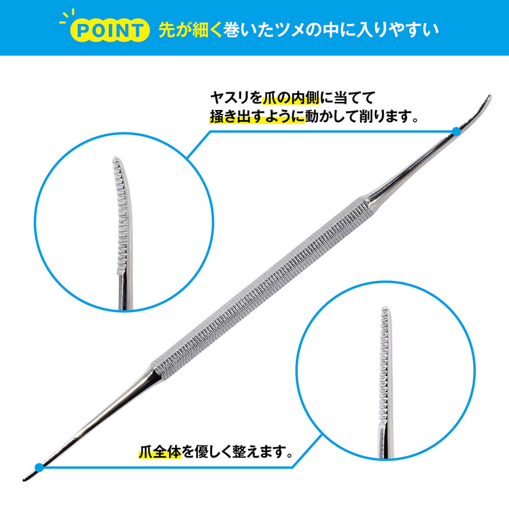 独自の凸刃がポイントの、ツメキリメーカーが考案した巻き爪用爪ヤスリです。
