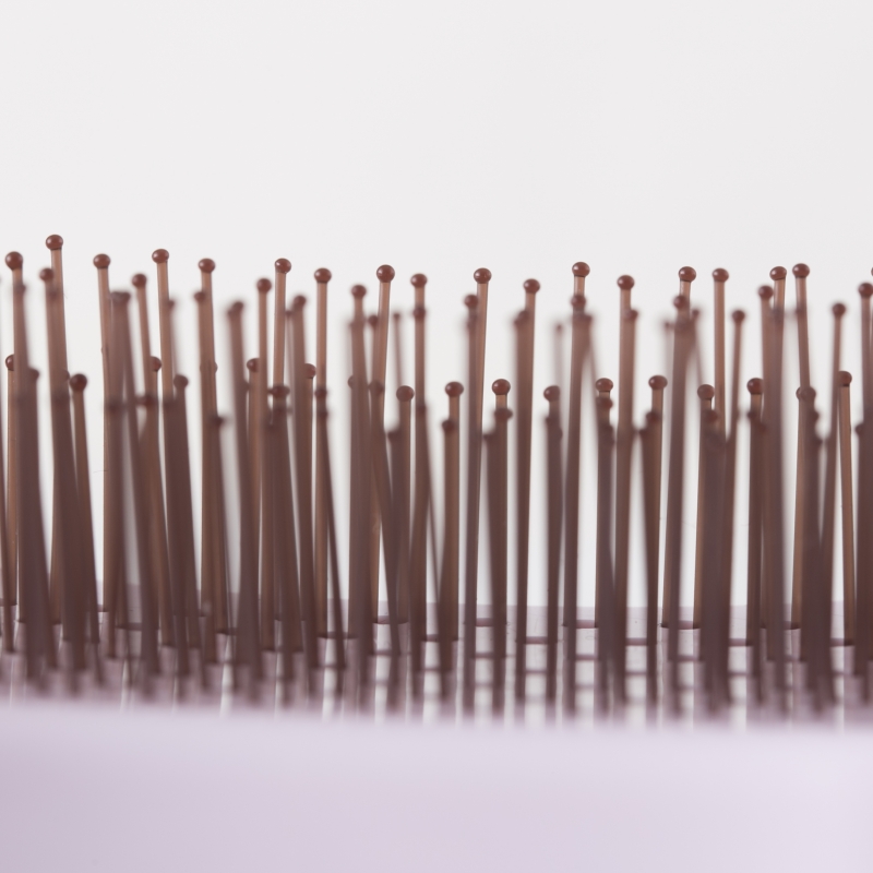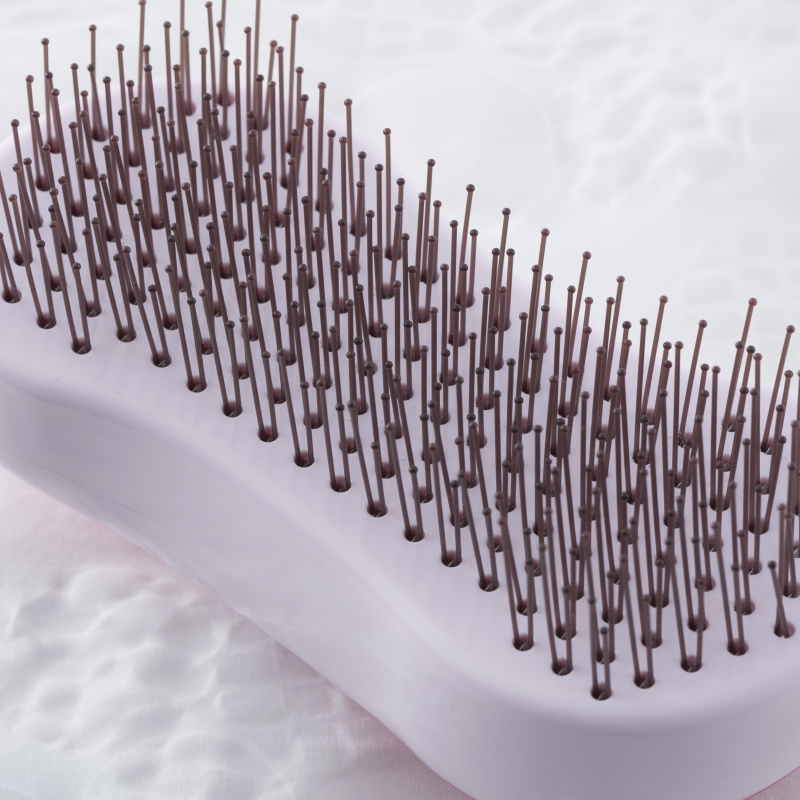 頭皮を傷つけにくい先端球状毛を2段で植毛した独自のU字植毛で髪の毛が絡みにくく、髪や頭皮を傷めません。適度なしなりで心地よい刺激を与えるやわらかめ×普通長さの毛によるマッサージが、頭皮をほぐします。髪のもつれをやさしくほぐし、切れ毛・枝毛を予防します。