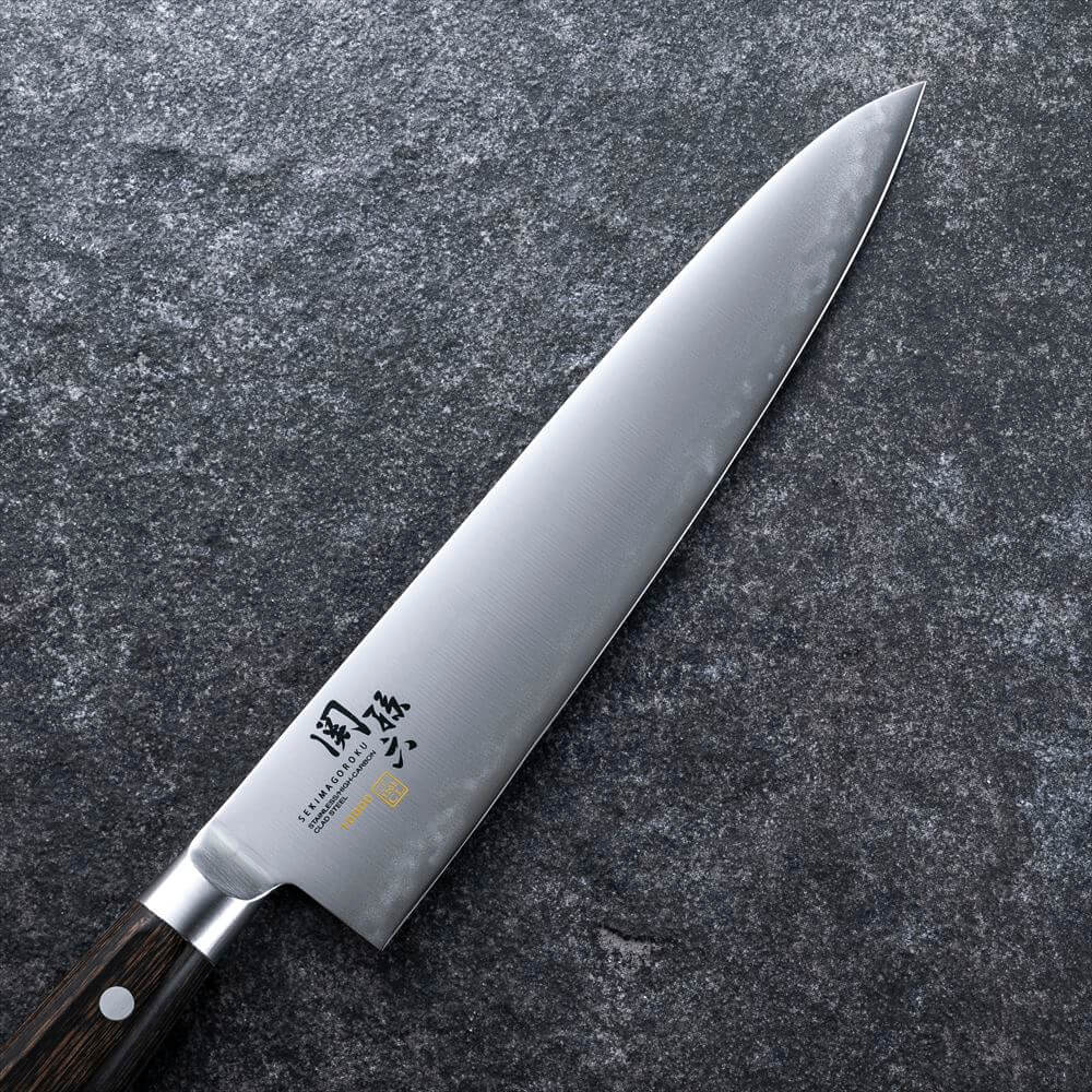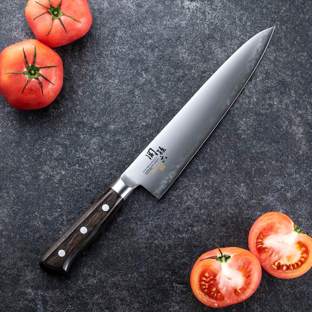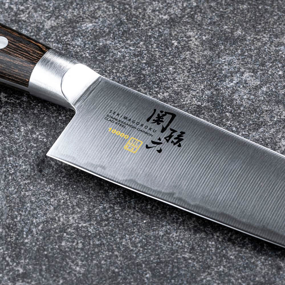 鎌倉時代に九州から関(美濃)に移り住んだ刀鍛冶が、良質の土、水、炭に恵まれたこの地で、刀剣作りをはじめたのが関鍛冶の起源です。多くの名刀が生まれましたが、名匠「関の孫六」は独特の作刀を工夫し、美しく芸術性の高い、切れ味の抜群な最上の業物を世に送り出しました。江戸から明治と時代は変遷し、関の刀匠たちの多くが家庭用刃物の製造へと転業しました。関の刀剣が「折れず曲がらず、よく切れる」と称賛された信念は、現代の刃物作りにもしっかりと受け継がれています。本製品「関孫六」の銘は27代目兼元、刀匠金子孫六氏によるもので、匠の技を生かしながら、その切れ味を現代に伝えています。