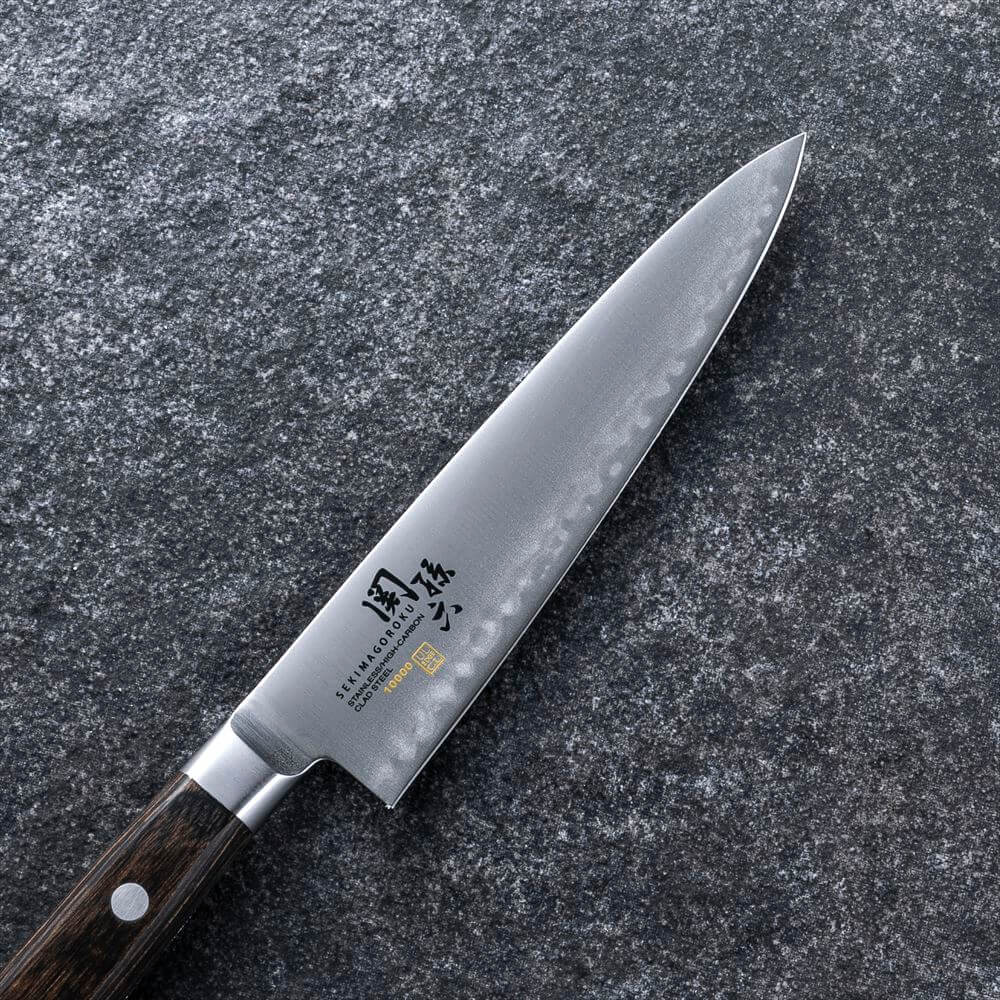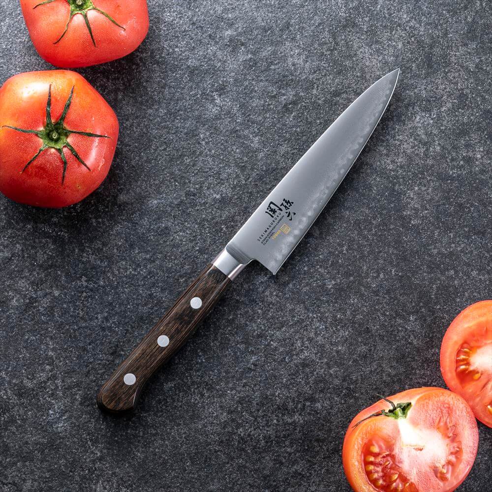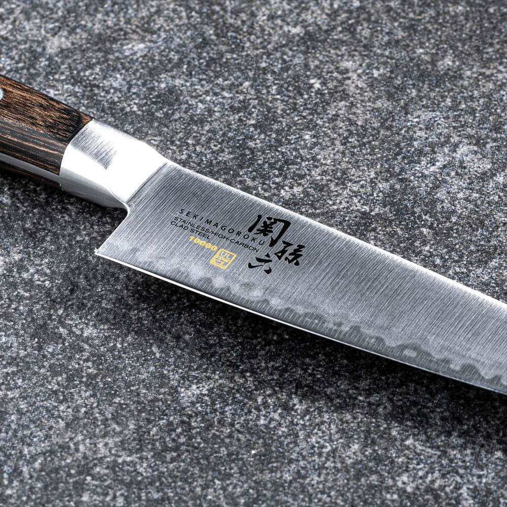 鎌倉時代に九州から関(美濃)に移り住んだ刀鍛冶が、良質の土、水、炭に恵まれたこの地で、刀剣作りをはじめたのが関鍛冶の起源です。多くの名刀が生まれましたが、名匠「関の孫六」は独特の作刀を工夫し、美しく芸術性の高い、切れ味の抜群な最上の業物を世に送り出しました。江戸から明治と時代は変遷し、関の刀匠たちの多くが家庭用刃物の製造へと転業しました。関の刀剣が「折れず曲がらず、よく切れる」と称賛された信念は、現代の刃物作りにもしっかりと受け継がれています。本製品「関孫六」の銘は27代目兼元、刀匠金子孫六氏によるもので、匠の技を生かしながら、その切れ味を現代に伝えています。