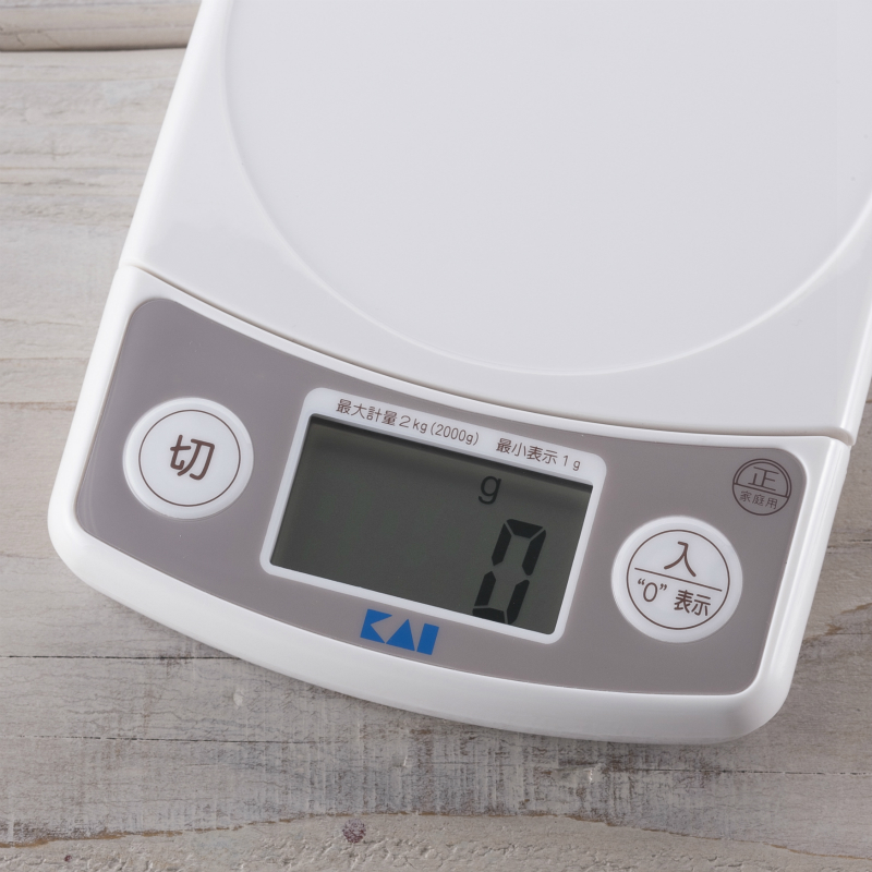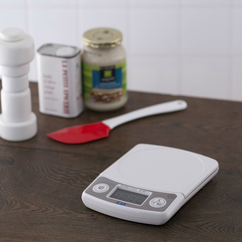 大きく見やすい液晶表示大画面。中身の重さだけ量れる「0」表示機能のついたキッチンスケールです。