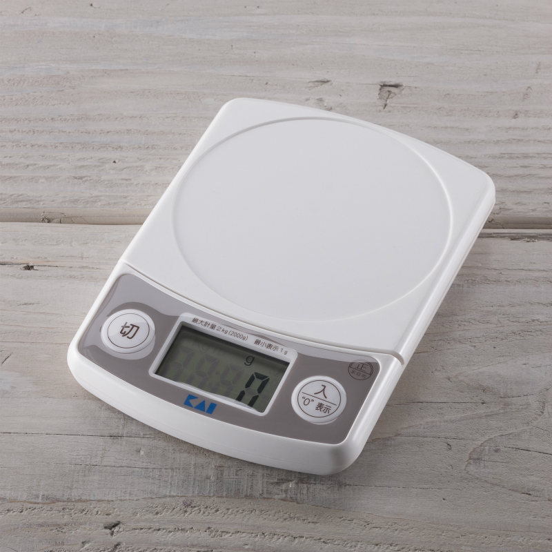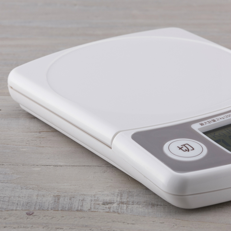 - 材質:本体ABS樹脂(耐熱温度80度)、 表示方式液晶4桁表示、最大計量2000g、最小表示1g 安定所要時間:約2秒 電源:DC3V、使用電池単3(AA)x2本(セット済)、電池寿命約2年 消費電流(使用時)2mA オートパワーオフ約1分