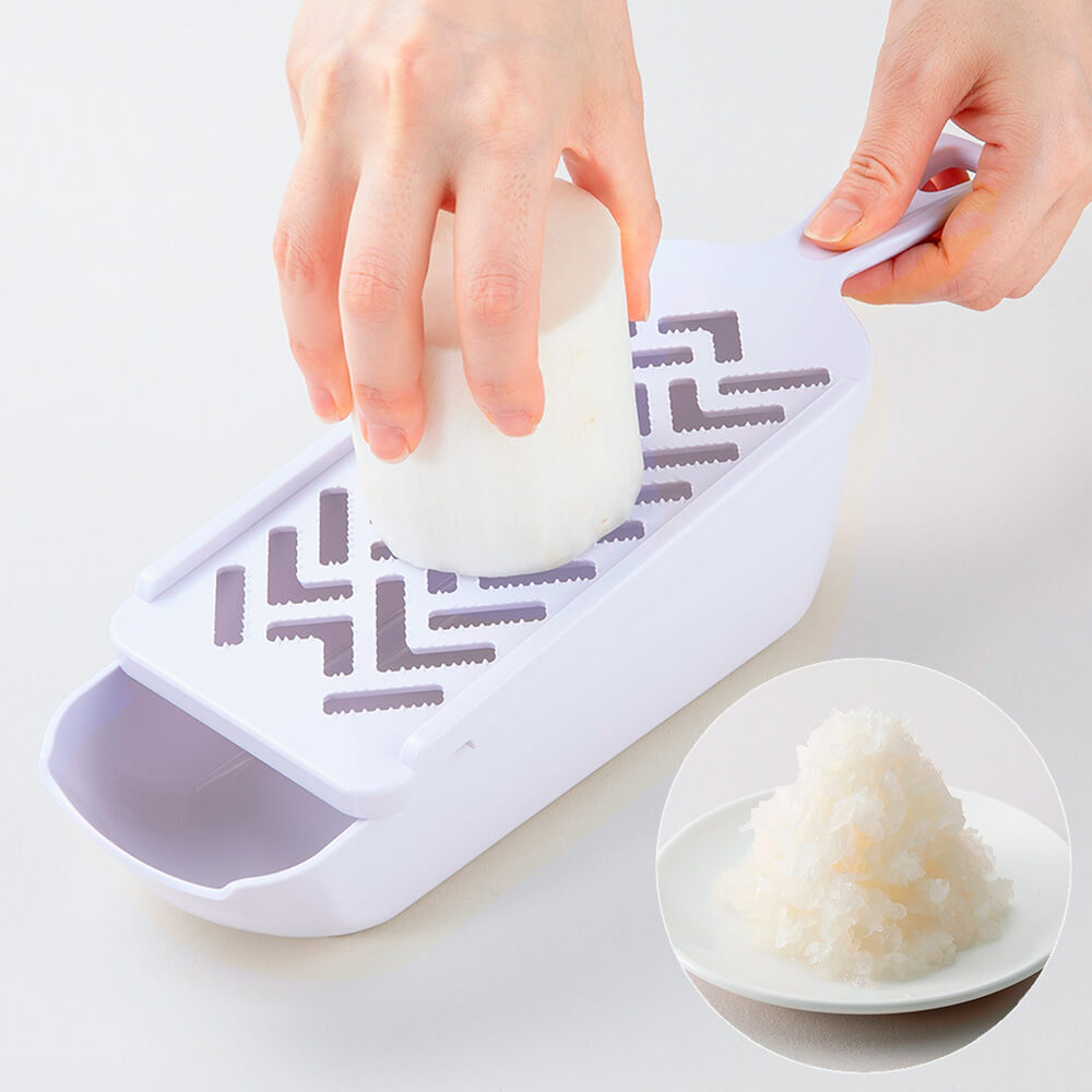 力を入れず、しかも食感のある美味しいおろしに仕上げる工夫が詰まったおろしプレートです。ロングサイズのおろし面で、大根など大きな食材もラクラクおろせます。