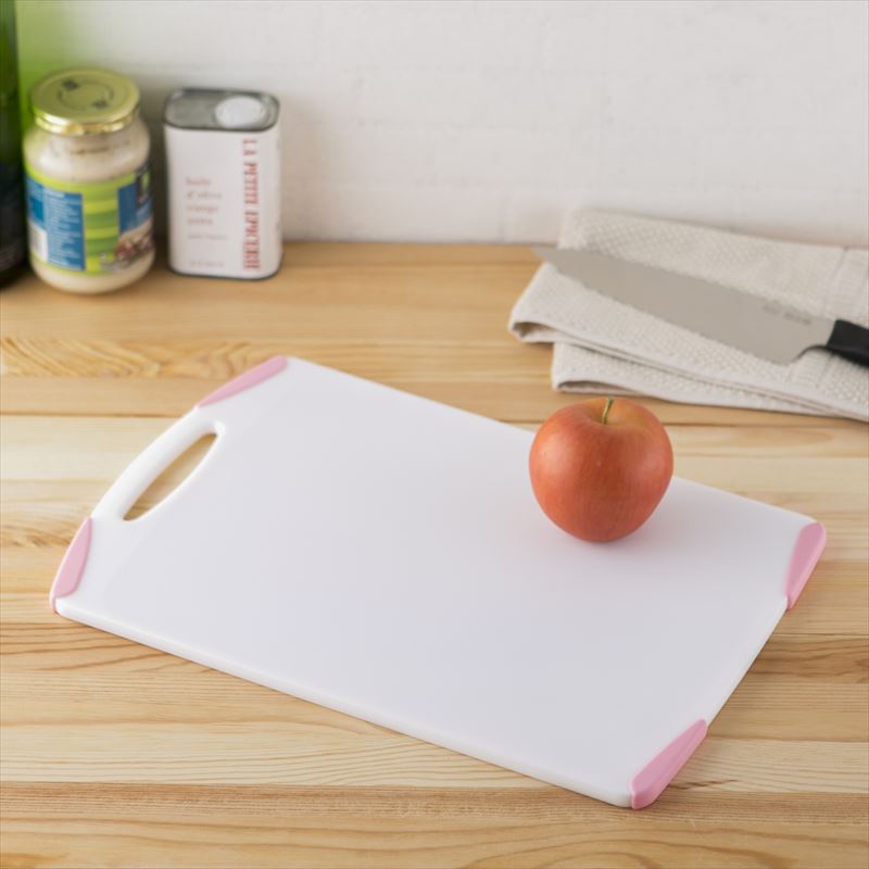 - 洗い物や収納もスイスイの驚きの軽さ、すべり止め付きなので安定して作業が行えます。水気のある食材をカットした時に、出てきた汁がこぼれにくいよう、板の中心に向かって薄くなる構造を採用しました。