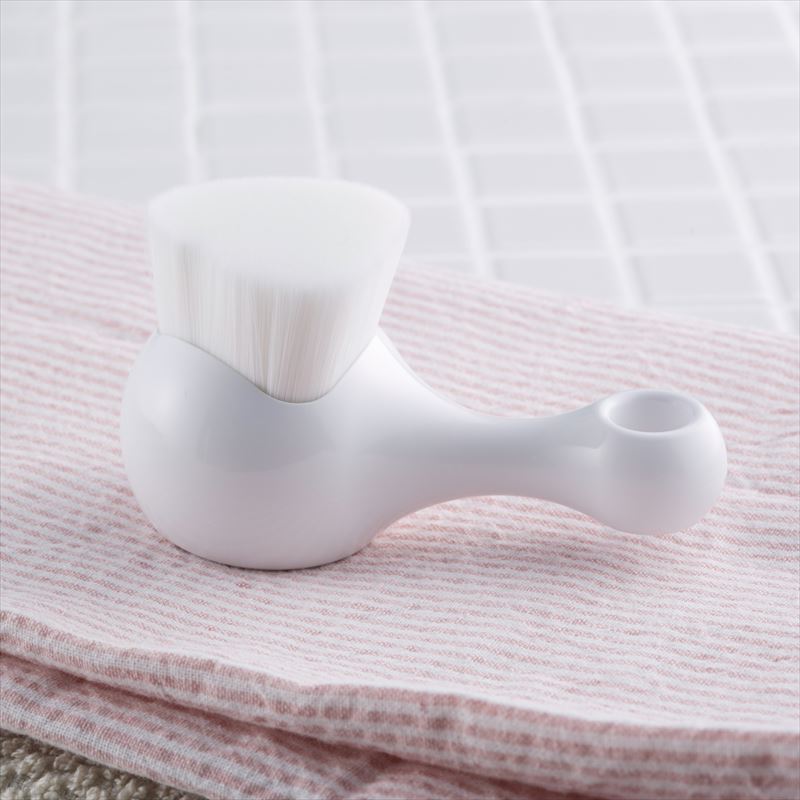 - 毛穴の奥までムラなく洗える、肌の明度が高くなるなどいいことずくめの洗顔ブラシ♪独自の三角形状のブラシ:メイクが残りがちな目の周り、角栓が詰まりやすい小鼻など細かいところにも届く三角形状を採用しました。PBT毛使用:なめらかで肌あたりの良い極細のPBT毛を採用。高密度に植毛されたブラシなので洗浄力が高く泡立ちもGOOD!こだわりのハンドル形状:ブラシの根本を握ることが出来、コンパクトで操作性の良いハンドル形状。使用後に吊るして乾かせるフック穴、平らに起きやすい形状なので洗顔中の一時置きも安心です。