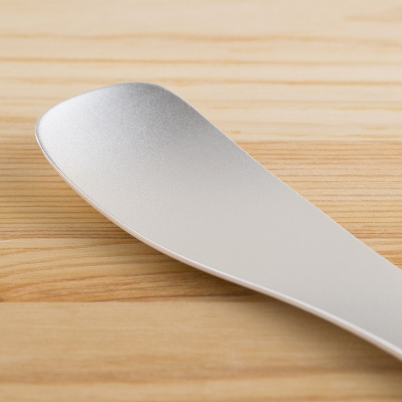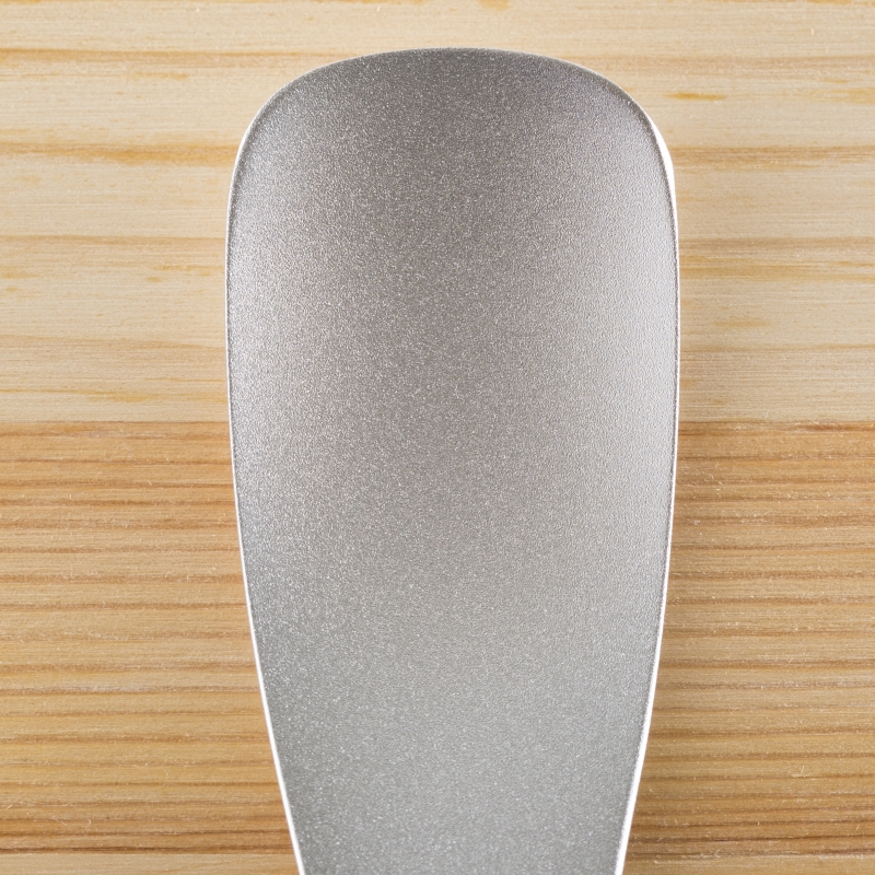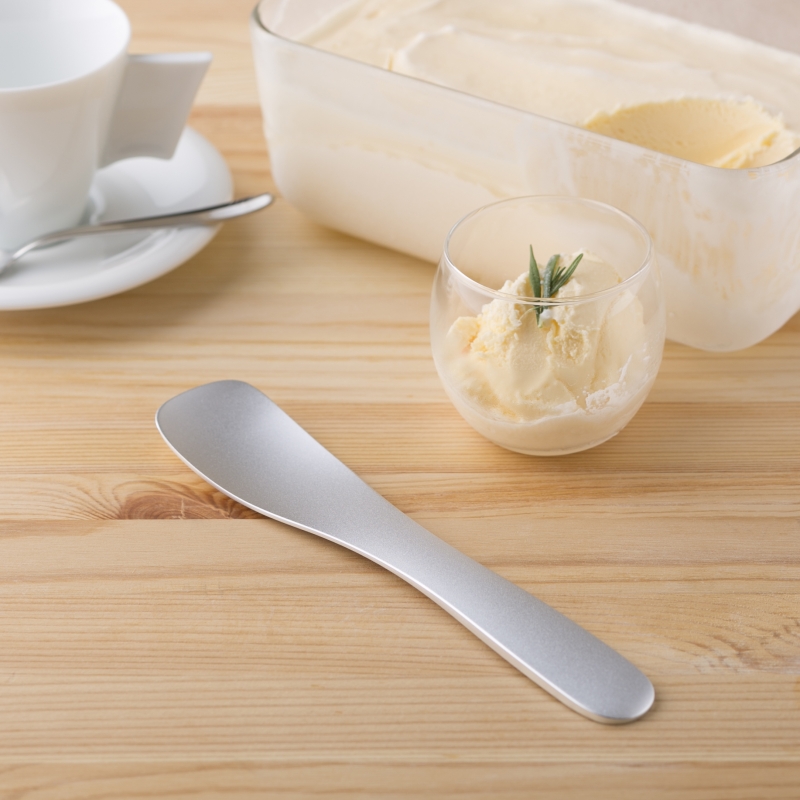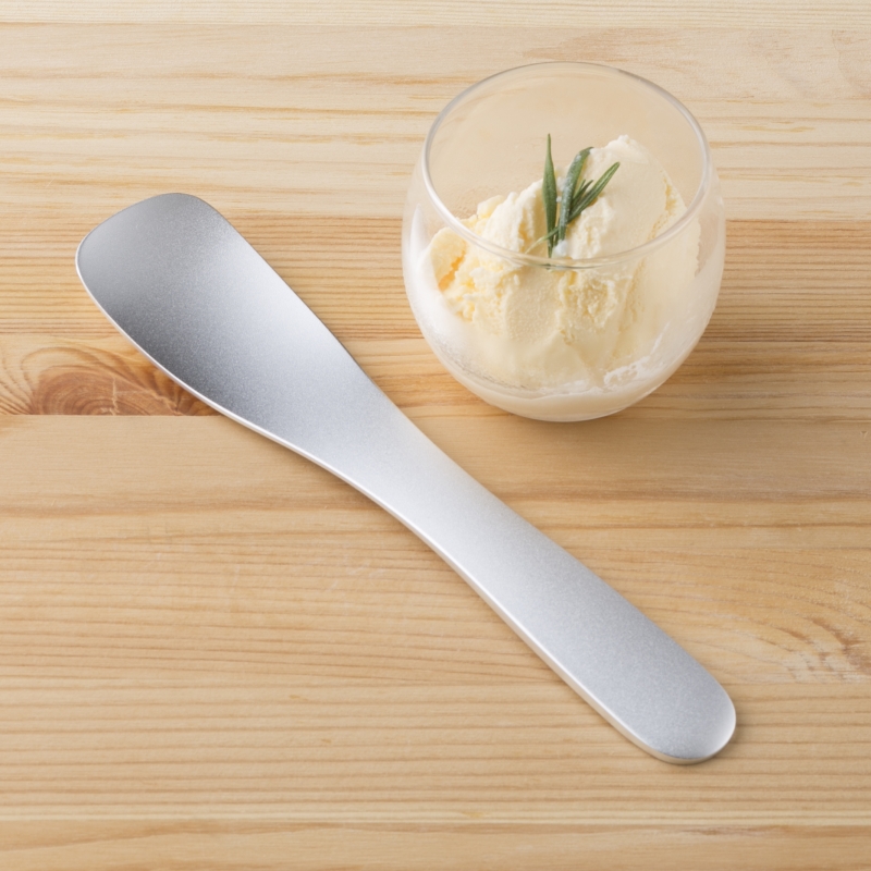 ステンレスの約12倍の熱伝導効率を持つアルミニウム素材で、冷凍庫から出したてのカチカチアイスもしっかりすくえます。先端部はより熱が伝わりやすく、スムーズなアイスへの入りを考慮し、薄く設計しました。
