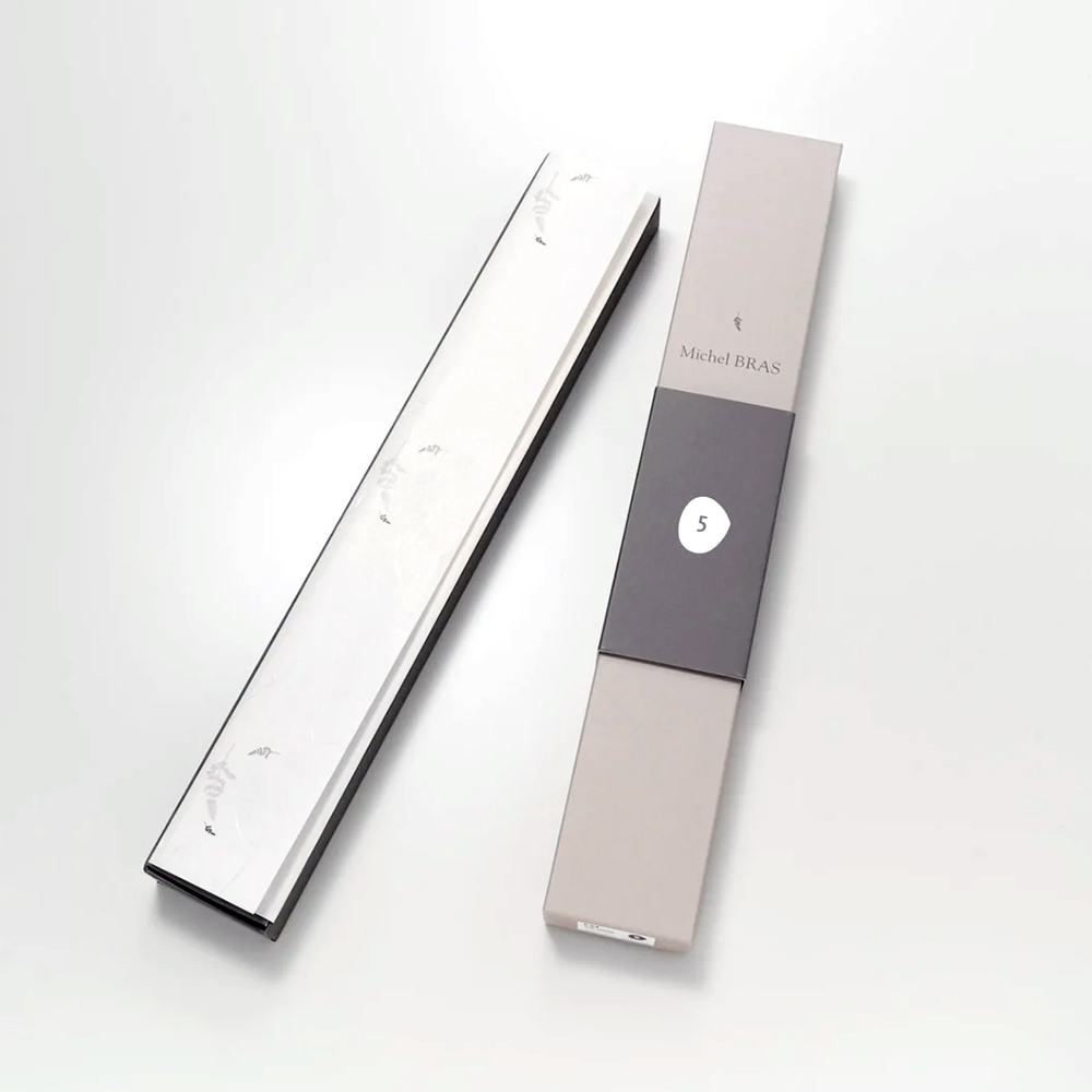 - <宝石のような包丁、「Michel BRAS」>「Michel BRAS」の10本のラインナップは、それぞれの用途に合わせて、最高の機能性と美しさを実現しました。刃体のしなやかさやハンドルの微妙な形状も、ひとつひとつ違っています。そして、組立はすべて手作業によって、丁寧に仕上げています。調理器具としての包丁を超えた、宝石のような存在感を体験してください。?小さめの肉を切るために?テーブルの上で肉を切り分けるのにも最適。刃線が緩やかな曲線を描いているため、食材の上を滑るような使い心地を生み出します。