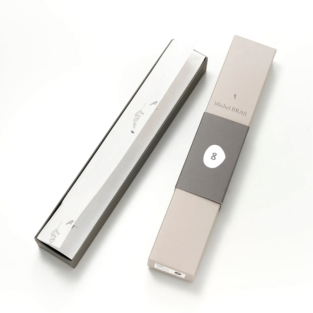 - <宝石のような包丁、「Michel BRAS」>「Michel BRAS」の10本のラインナップは、それぞれの用途に合わせて、最高の機能性と美しさを実現しました。刃体のしなやかさやハンドルの微妙な形状も、ひとつひとつ違っています。そして、組立はすべて手作業によって、丁寧に仕上げています。調理器具としての包丁を超えた、宝石のような存在感を体験してください。?スムースな骨すきのために?骨に沿わせる動きを考えて、しなりを持たせた刃体が特徴。骨すきから神経を取り除くような細かな作業まで、楽にこなせる1本です。