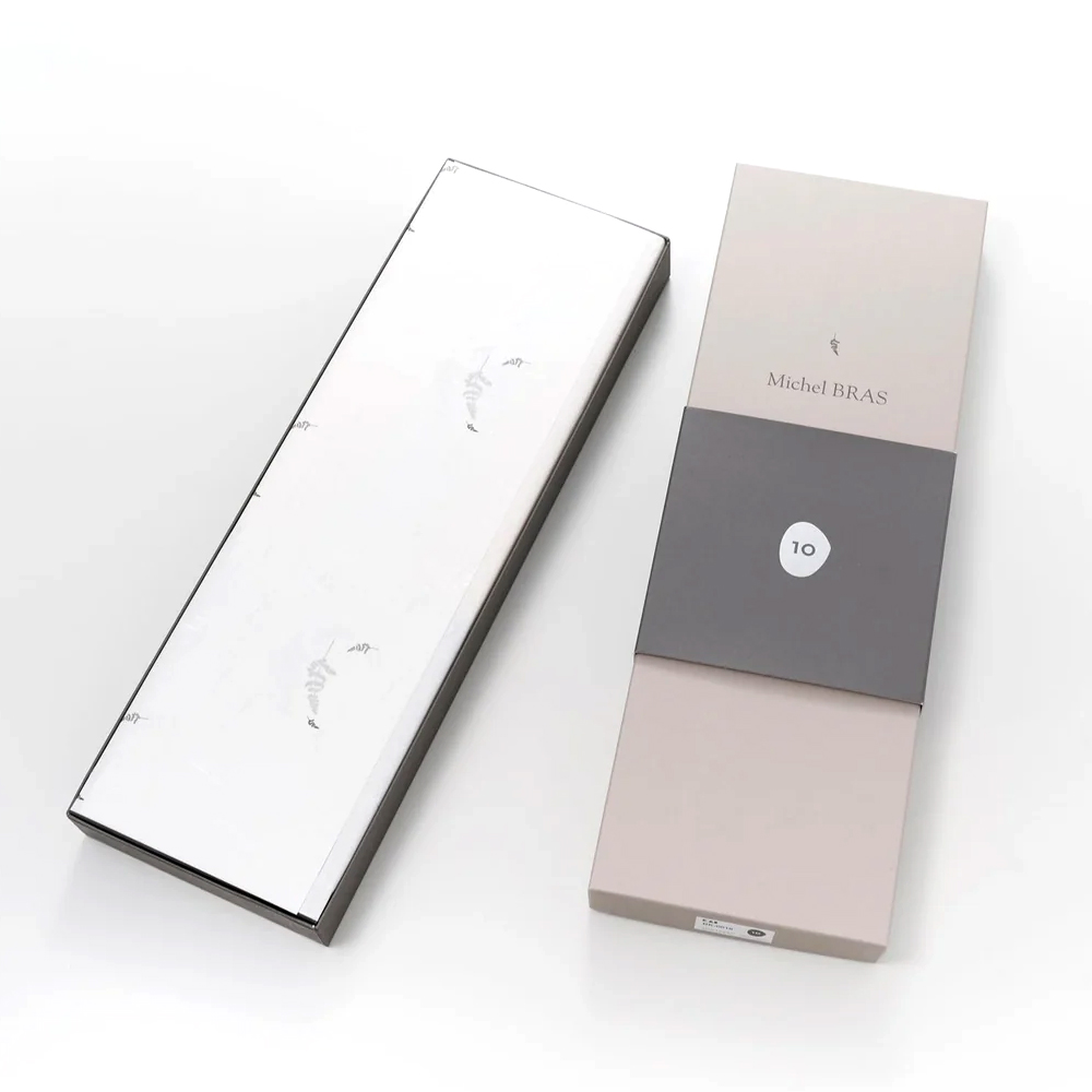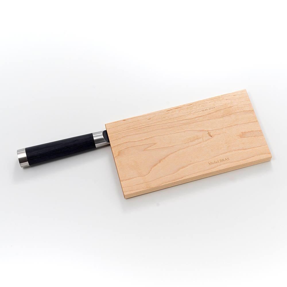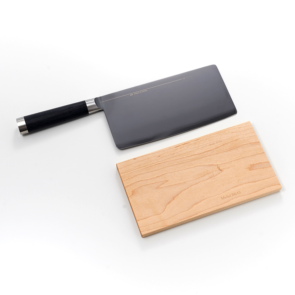 - <宝石のような包丁、「Michel BRAS」>「Michel BRAS」の10本のラインナップは、それぞれの用途に合わせて、最高の機能性と美しさを実現しました。刃体のしなやかさやハンドルの微妙な形状も、ひとつひとつ違っています。そして、組立はすべて手作業によって、丁寧に仕上げています。調理器具としての包丁を超えた、宝石のような存在感を体験してください。?切る・さばく・たたく、を自在に行うために?様々な作業を可能にするために、包丁とバットを一体化させました。背に4mmの厚さがあるダイナミックな刃体です。